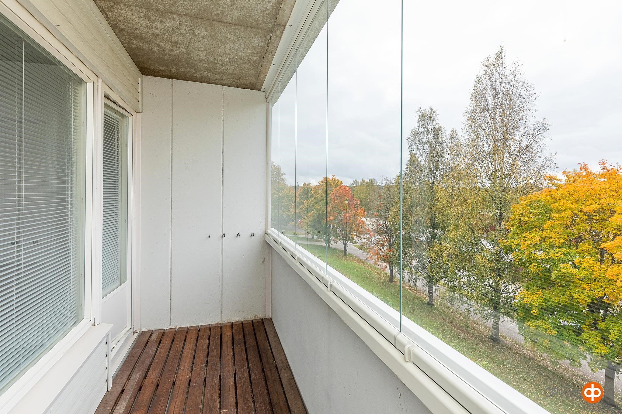 - Reilunkoinen olohuoneen levyinen parveke, jossa hyvin tilaa parvekekalusteille.