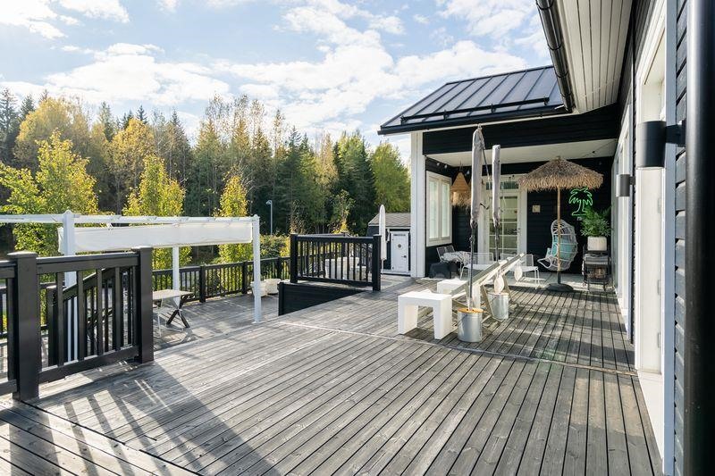 Tervetuloa tutustumaan tähän kauniiseen, vuonna 2014 rakennettuun energia tehokkaaseen Kannustalon omakotitaloon, joka tarjoaa täydelliset puitteet perheesi elämälle. Talo on muuttovalmis ja erinomaisesti ylläpidetty, joten voit muuttaa ilman huolia ja nauttia uudesta kodistasi heti. Tässä tilavassa kodissa on viisi valoisaa huonetta, jotka tarjoavat runsaasti tilaa perheelle tai vaikka etätyöskentelyyn. Isossa ja modernissa keittiössä on tilaa kokkailla ja nauttia perheen kanssa, ja olohuoneen ja keittiön välissä sijaitseva suuri takka tuo lämpöä ja mukavuutta talveen. Takka avautuu molempiin suuntiin, jolloin voit luoda tunnelmaa niin keittiöön kuin olohuoneeseenkin. Koko rakennusta ympäröi viihtyisät terassit, joissa on ihanaa rentoutua kesäpäivinä ja voi nauttia auringosta koko päivän ajan. Takaterassin kruunaa perheen pikkuväelle Kannustalon " Onnelin ja Annelin " pikkumökki. Kiinteistöllä on myös kahden auton autokatos, jossa myös n. 20 m² lämmin varasto, joka tarjoaa erinomaiset säilytystilat. Sijainti on mainio: rauhallinen alue meren läheisyydessä, ja hyvät yhteydet pääkaupunkiseudulle helpottavat arkea. Tämä on oiva tilaisuus nauttia rauhallisesta elämäntavasta ilman kaupungin hälinää!