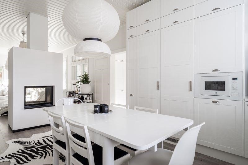 - Jääkaappi, pakastekaappi, erillisuuni, liesitaso induktio, liesituuletin hormiin, mikroaaltouuni, astianpesukone, kaapistot Topi keittiön kaapistot, kiinteät valaisimet, pöytätasojen materiaali pinnoitettu tammi. Intgroidut keittiönkoneet.