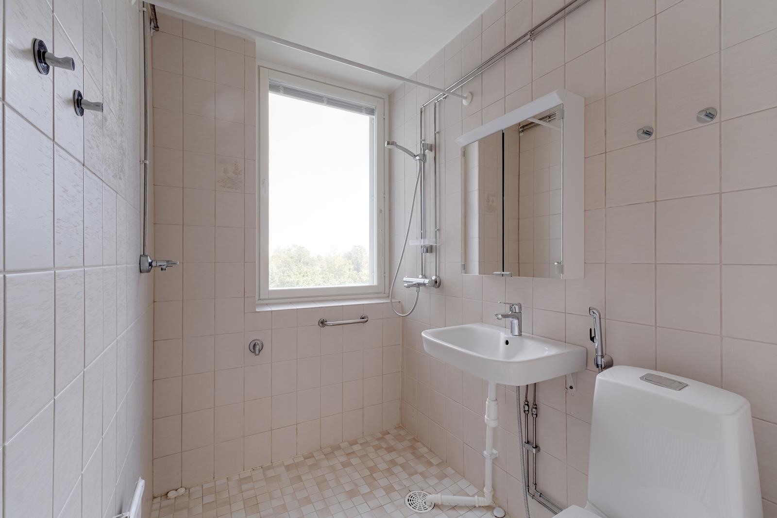 - Kylpyhuone, suihku, peilit, pesukoneliitäntä.