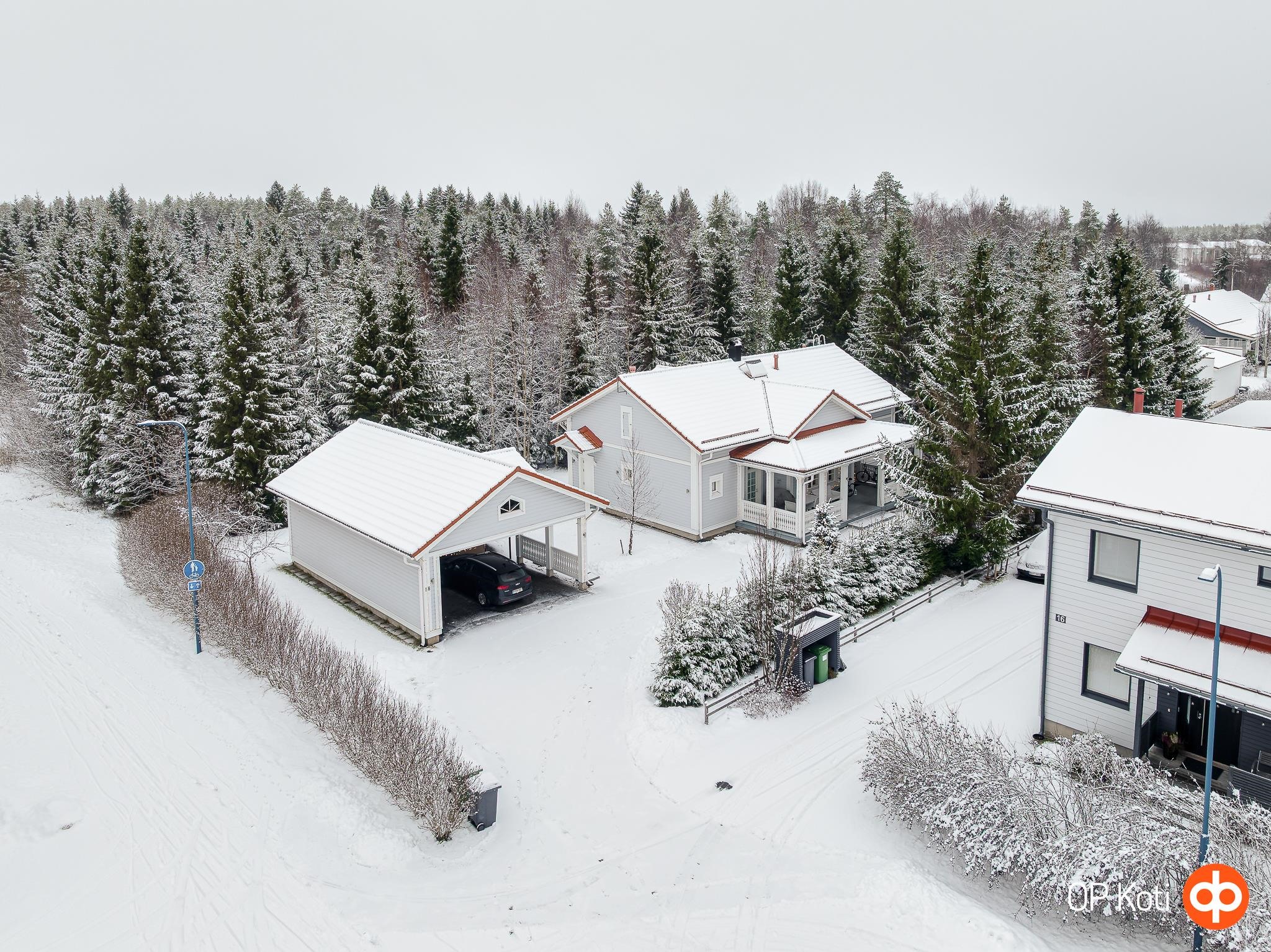 Tämä koti on täydellinen valinta perheelle, joka arvostaa tilaa ja toimivuutta. Neljä makuuhuonetta mahdollistavat jokaiselle perheenjäsenelle oman rauhallisen tilan, ja avara olohuone kutsuu yhteisiin hetkiin. Keittiössä Puustellin kaapistot ja modernit kodinkoneet tekevät ruoanlaitosta nautinnon. Kodinhoitohuoneen käytännöllisyys helpottaa arkea, ja sauna tarjoaa rentoutumista kiireisen päivän päätteeksi. Vesikiertoinen lattialämmitys takaa miellyttävän asumismukavuuden ympäri vuoden. Kahden auton katos ja kaksi lämmintä varastoa tuovat lisätilaa säilytykseen. Isompi varasto on sisustettu kivasti, joten on oivallinen harraste- tai työtila. Piha on kauniisti laatoitettu ja istutukset tuovat vehreyttä ympäristöön. Pihapiiri puiston laidalla takaa rauhallisuuden ja yksityisyyden.
