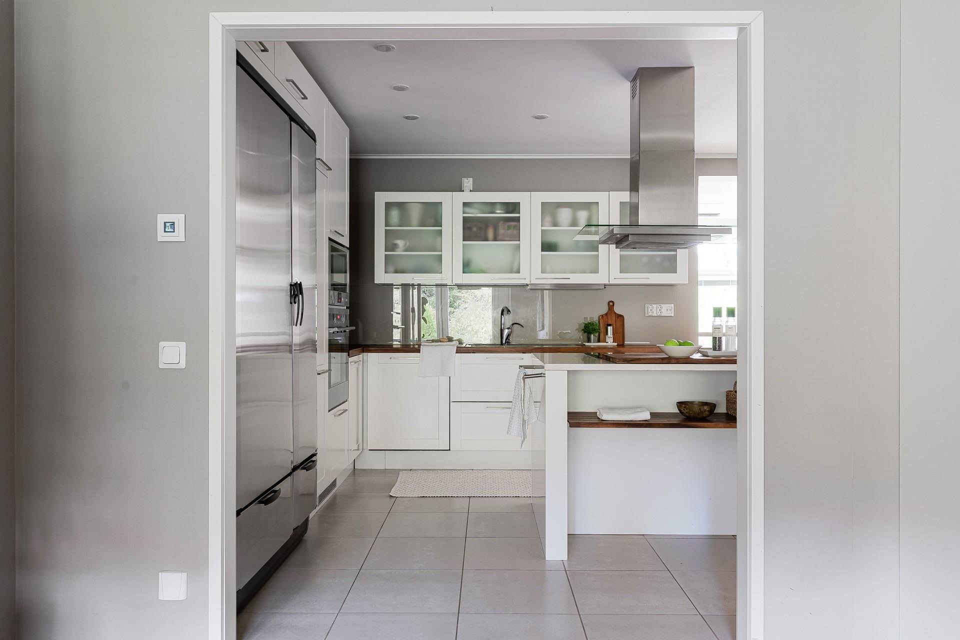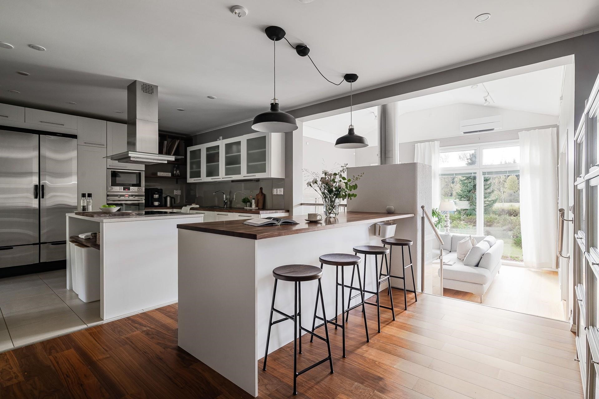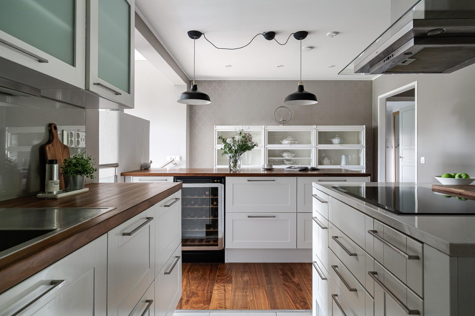 - Jääkaappipakastin Festivo, Työhuoneessa Samsung jääkaappi/pakastin., erillisuuni, induktioliesi uusittu 2023, leivinuuni, mikroaaltouuni, astianpesukone Bosch, etäohjattava, kaapistot, viinikaappi, kiinteät valaisimet, pöytätasojen materiaali Puu.