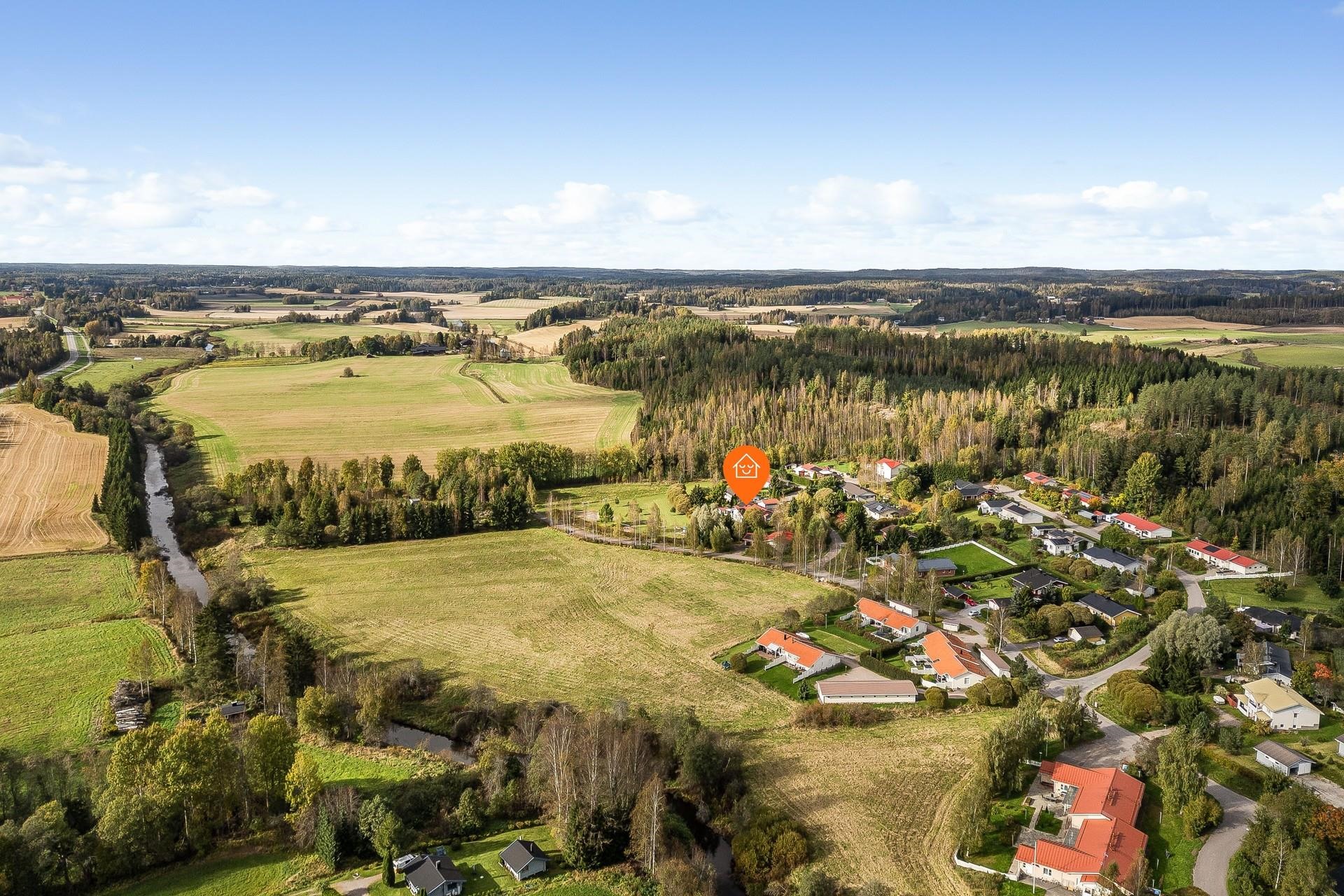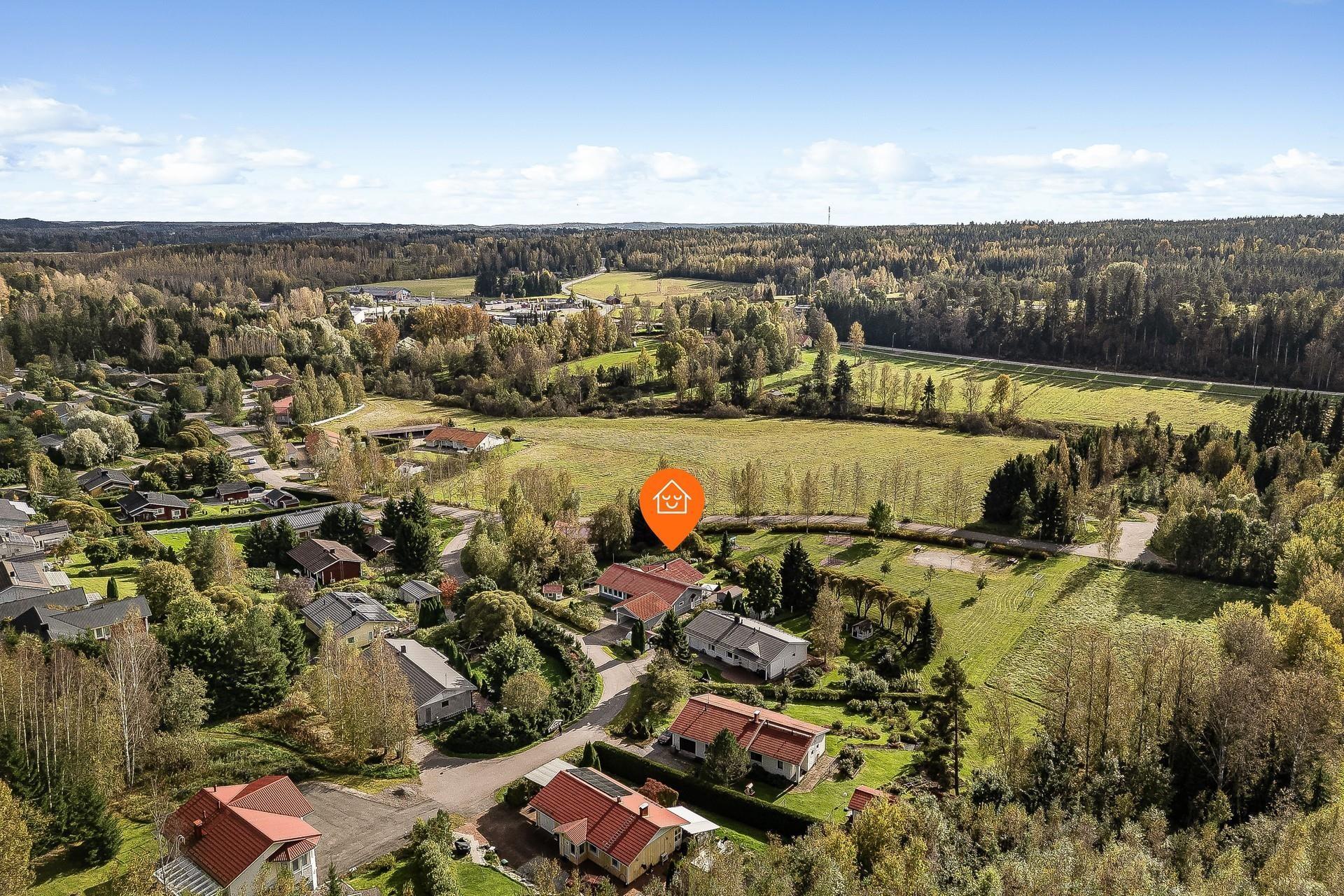 Ystävällinen naapurusto, turvallinen ja viihtyisä ympäristö perheelle.