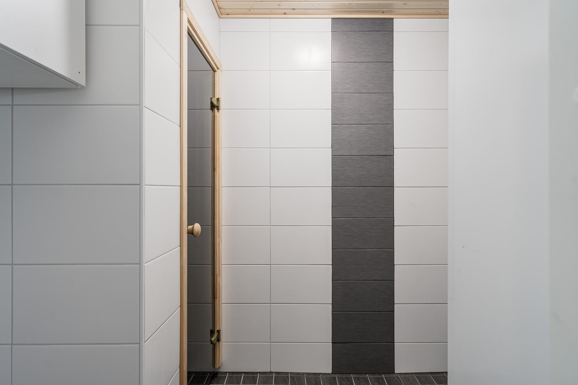 - Sauna, sähkökiuas, kylpyhuone, erillinen wc, suihku, peilit, kaapit, allaskaappi, pesukoneliitäntä, lattialämmitys kylpyhuoneessa, kiinteät valaisimet. Remontoitu 2025