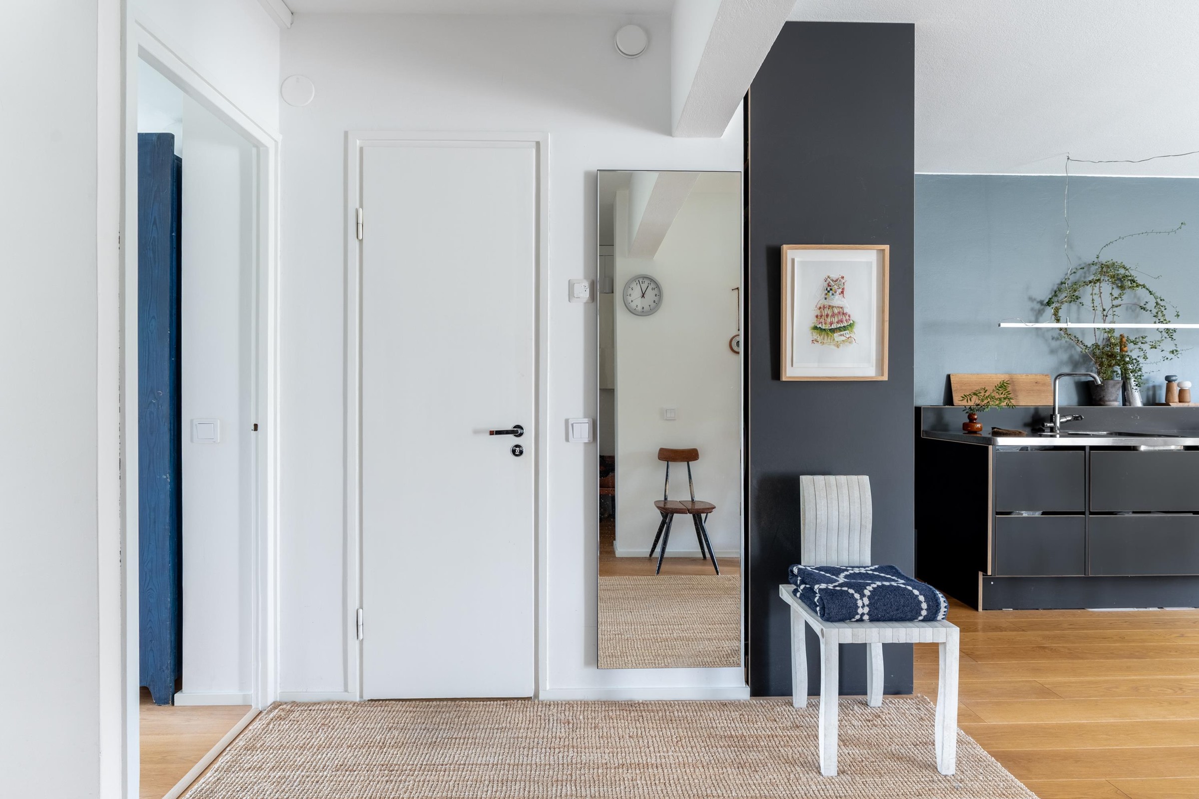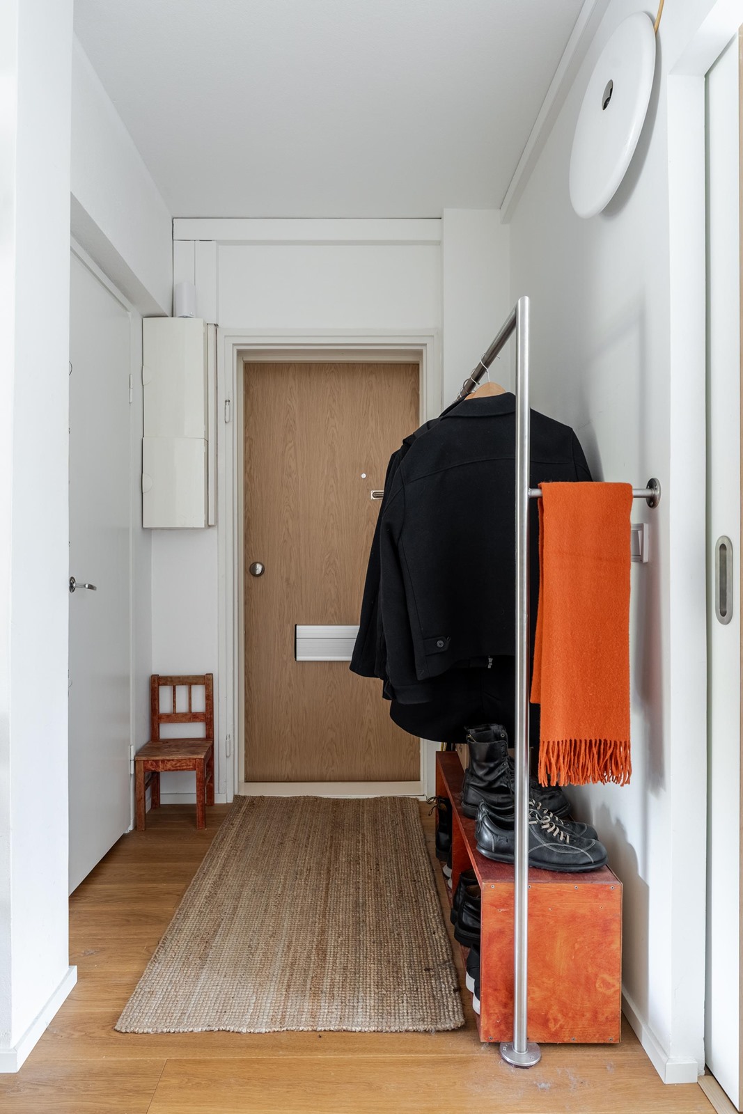 Kodin materiaalivalinnat kestävät aikaa ja korostavat luonnollista kauneutta. Öljykäsitelty tammiparketti tuo lämpöä, sileiksi maalatut ja tasoitetut pinnat luovat selkeyttä, ja tarkkaan harkitut yksityiskohdat viimeistelevät kokonaisuuden. Kylpyhuoneeseen mahtuu vaivattomasti pyykinpesukone ja asunnolla on myös suuri vaatehuone käytännöllisesti heti eteisen yhteydessä.