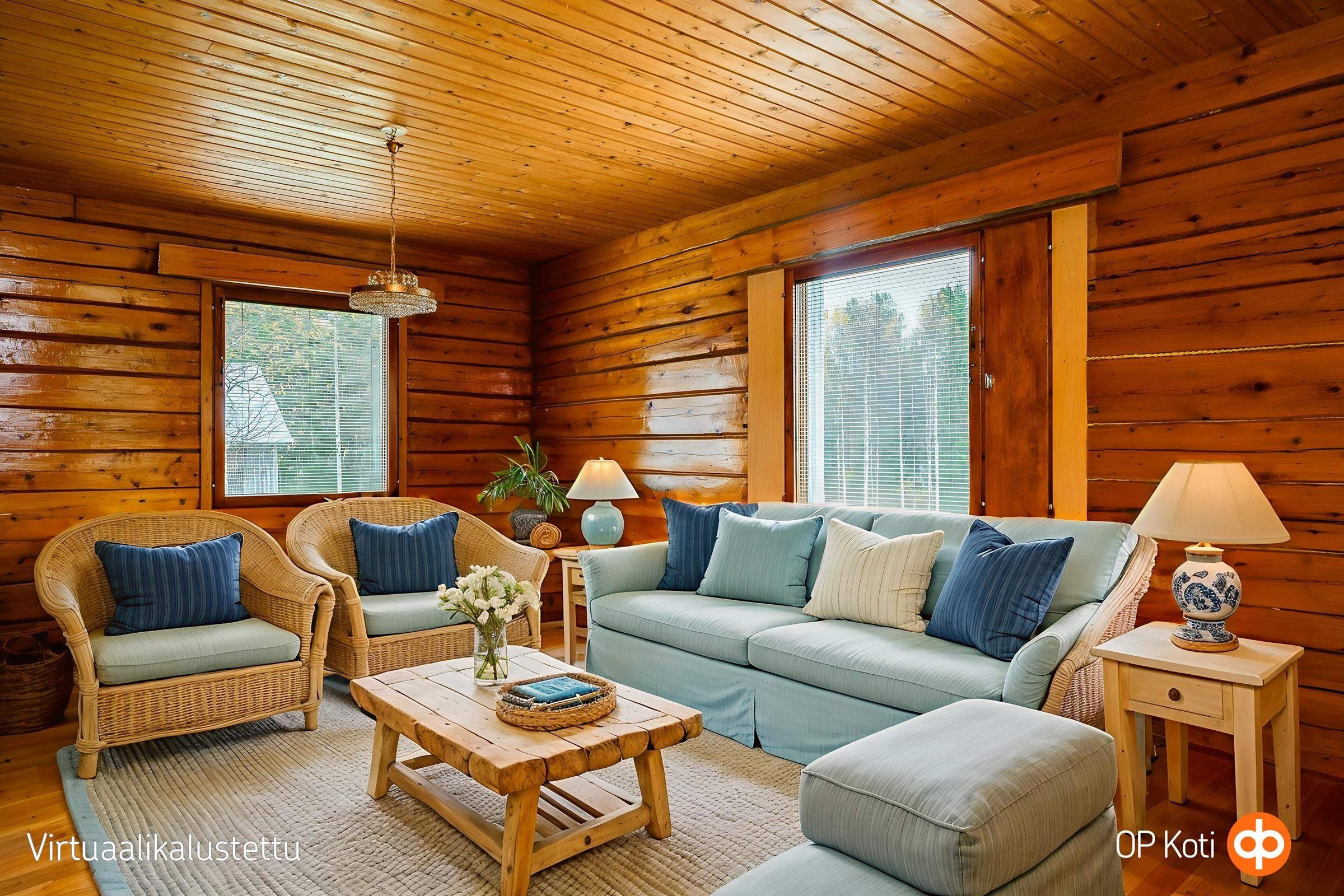 - Sauna, puukiuas, kylpyhuone, erillinen wc, kiinteät valaisimet.