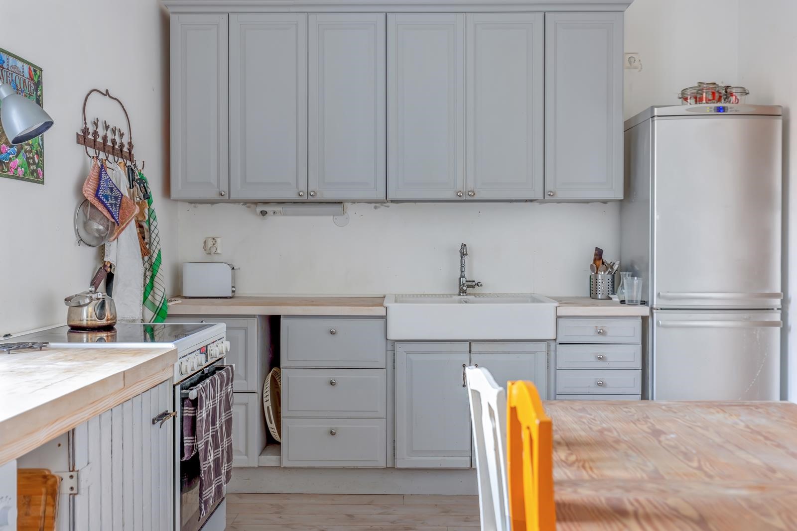 - Jääkaappipakastin, sähköliesi induktioliesi (yksi levy ei toimi), mikroaaltouuni, kaapistot, kiinteät valaisimet spotit. Keittiön taso (koivua) uusittu, myös osa kaapistosta 2024