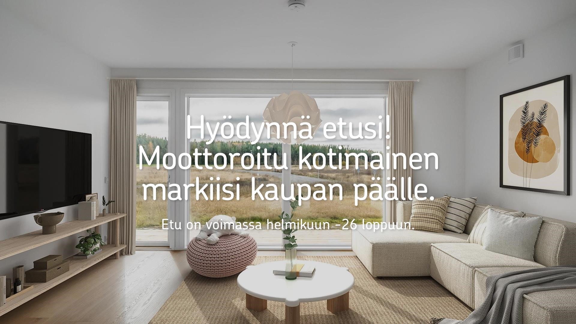 Hyödynnä etusi! Nyt tämän kodin ostajalle helmikuun 2026 ajan kotimainen moottoroitu markiisi kaupan päälle!
