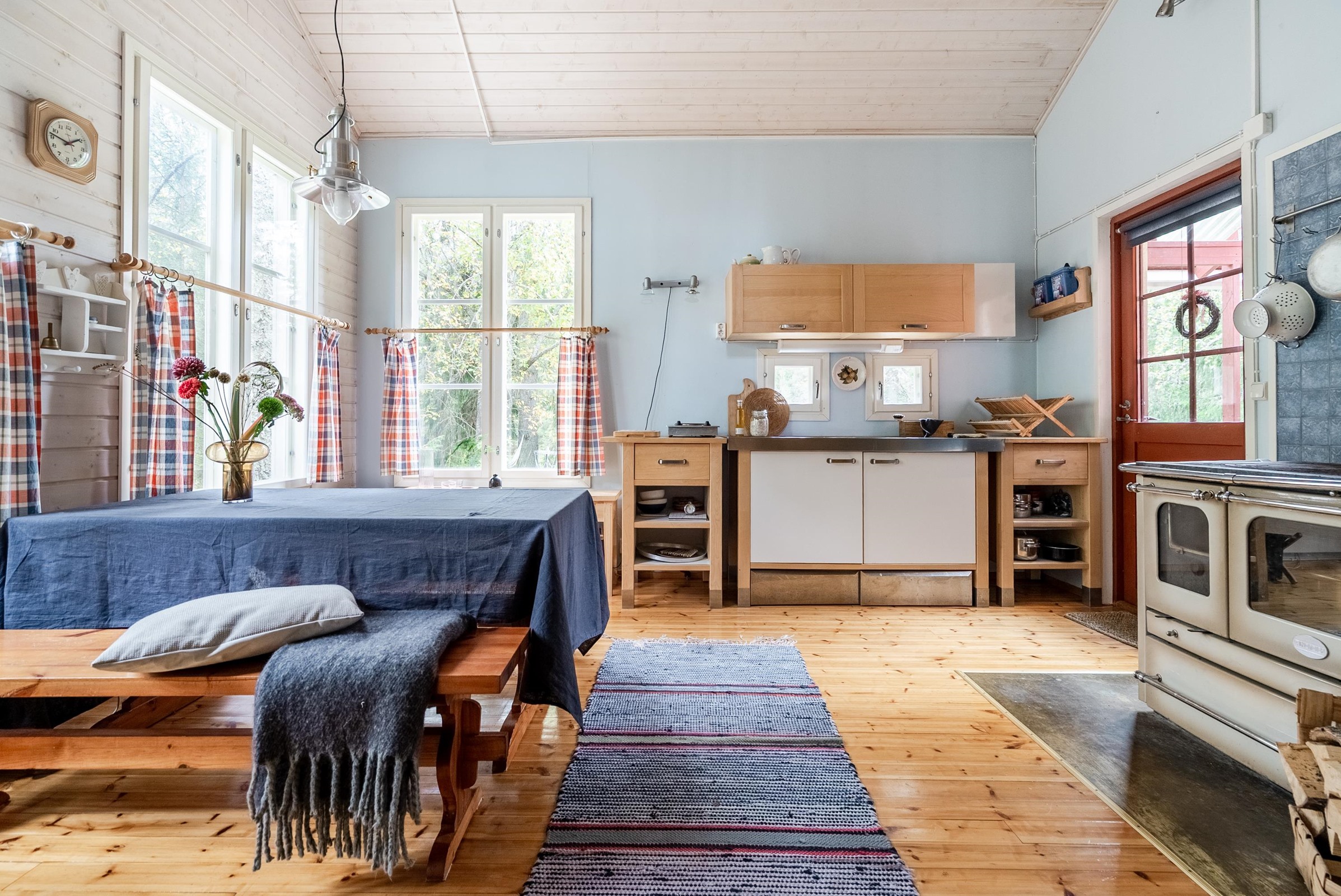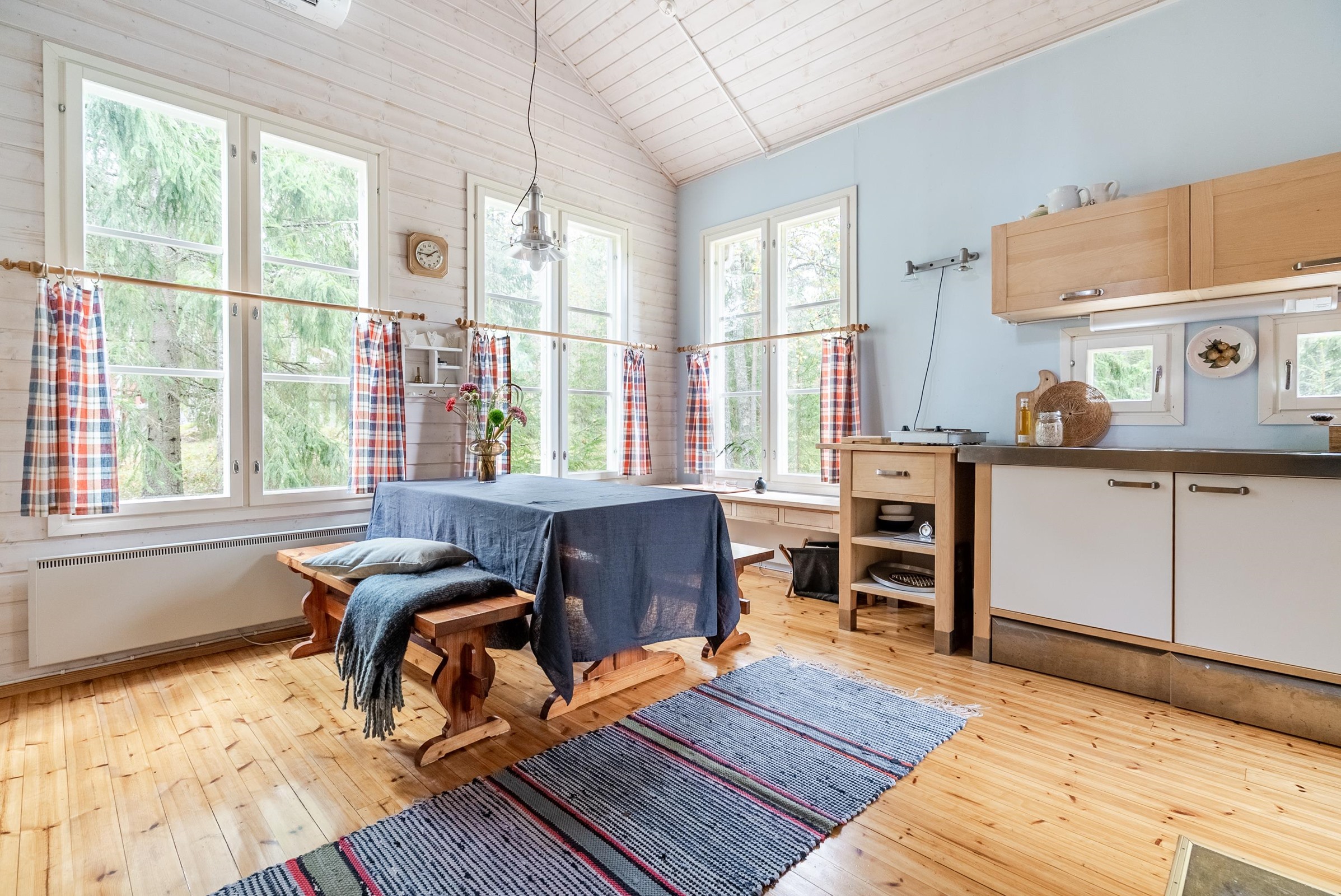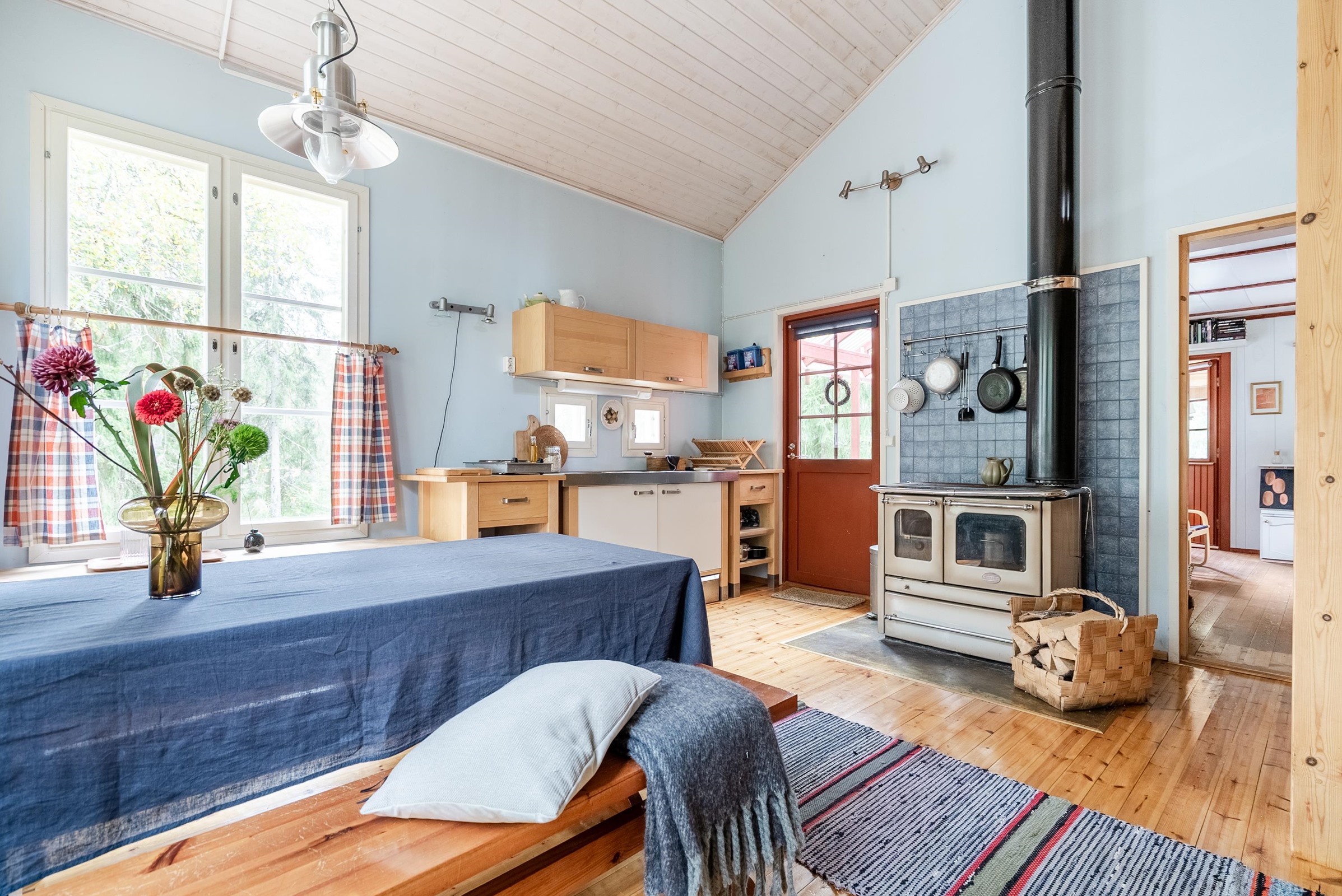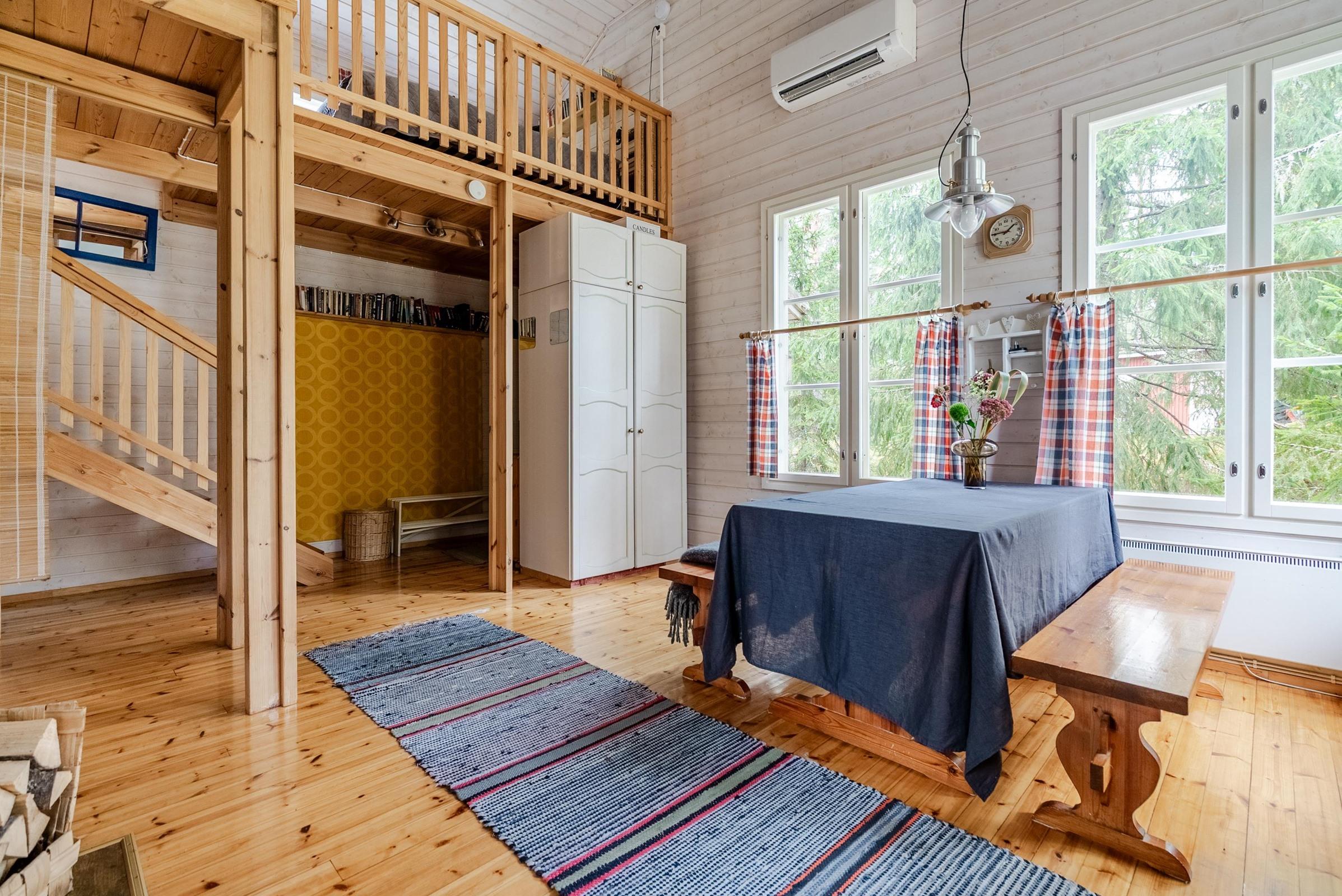 - Tupakeittiö, olohuone, parvi, makuusoppi ja veranta (kesäkeittiö).