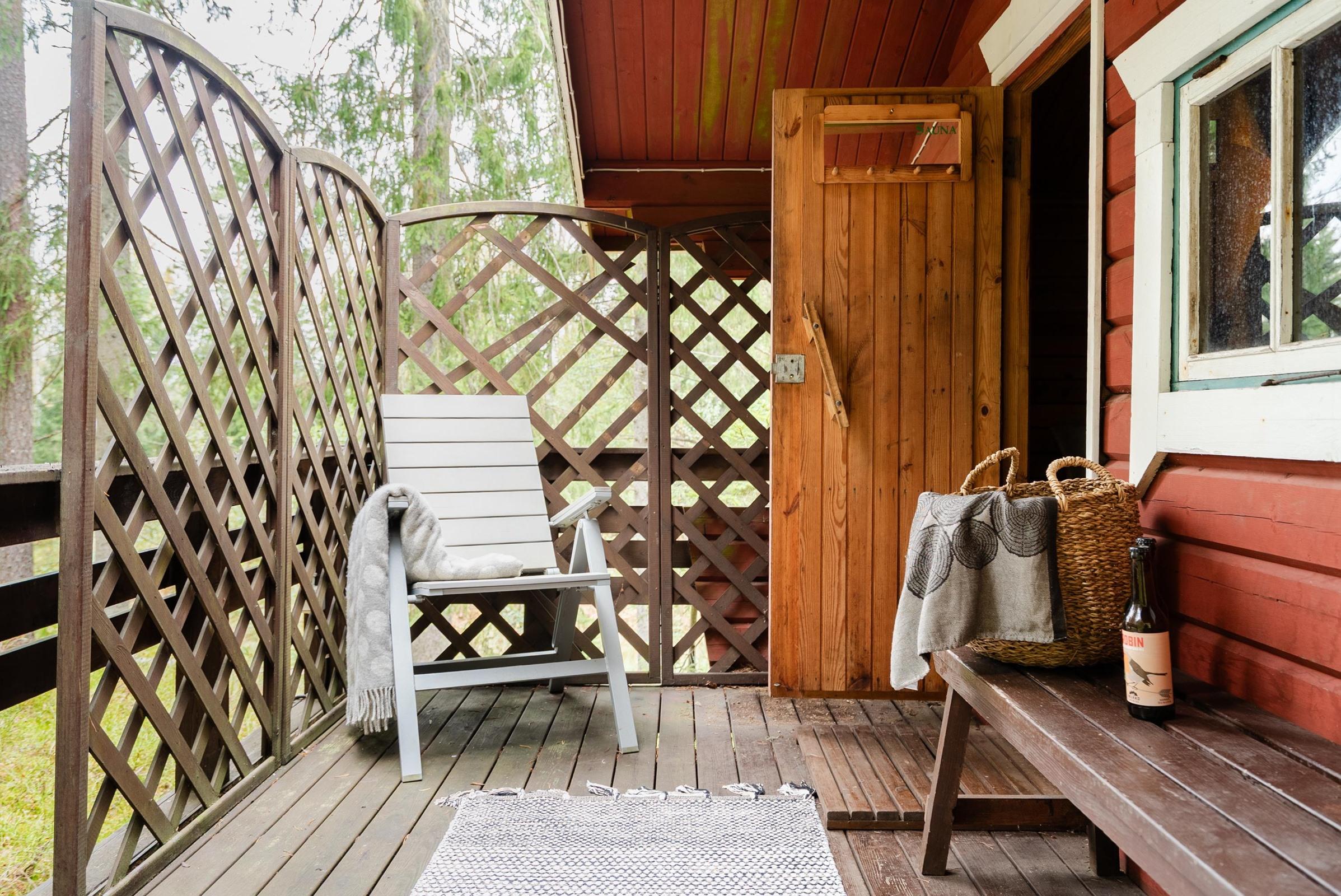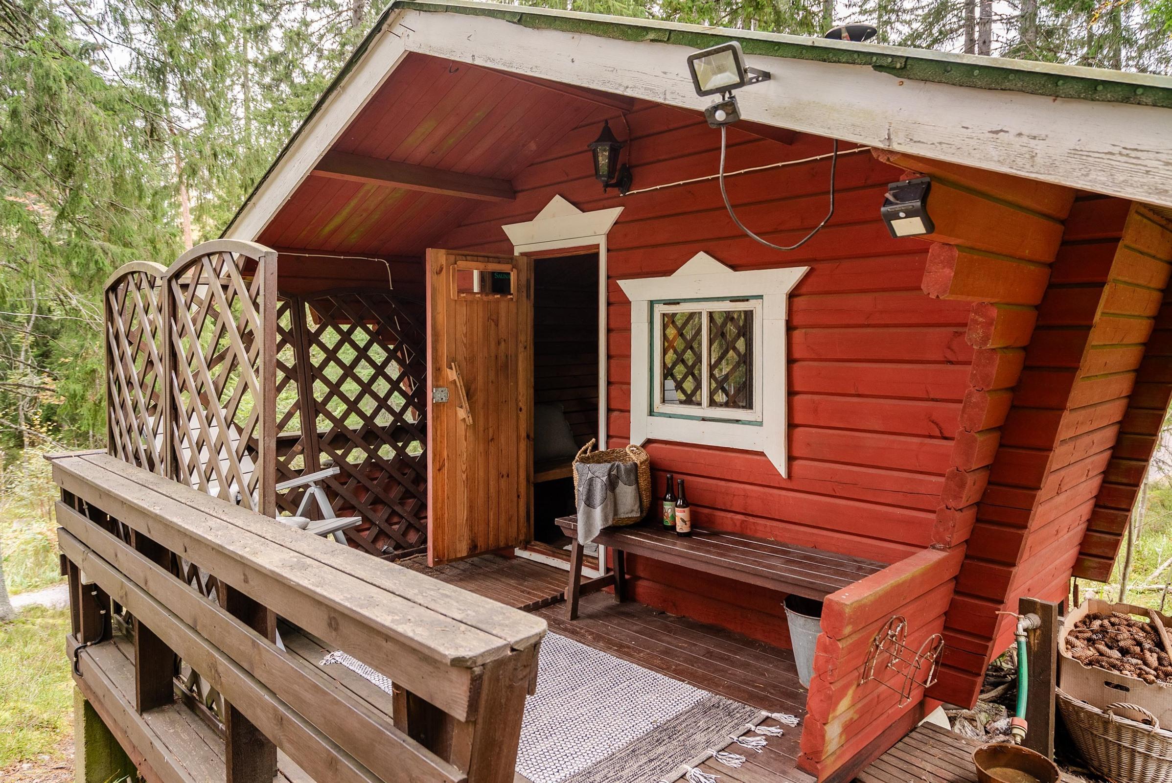 - Erillinen ulkosauna: puukiuas vesisäiliöllä, ikkunallinen tila, pukuhuone WC puucee: wc pitää päivittää kompostoivaksi / säädösten mukaiseksi.
