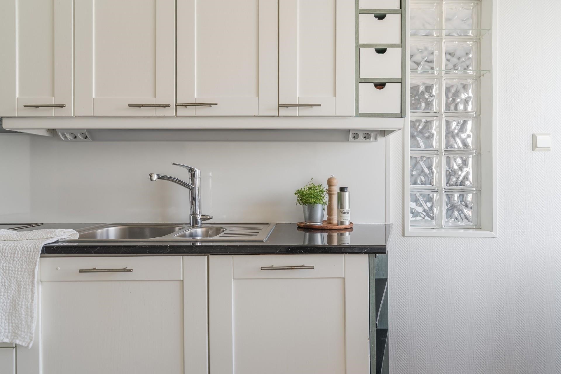 - Jääkaappipakastin, erillisuuni, keraaminen liesi, liesituuletin, astianpesukone, kaapistot, kiinteät valaisimet. Laminaattitasot