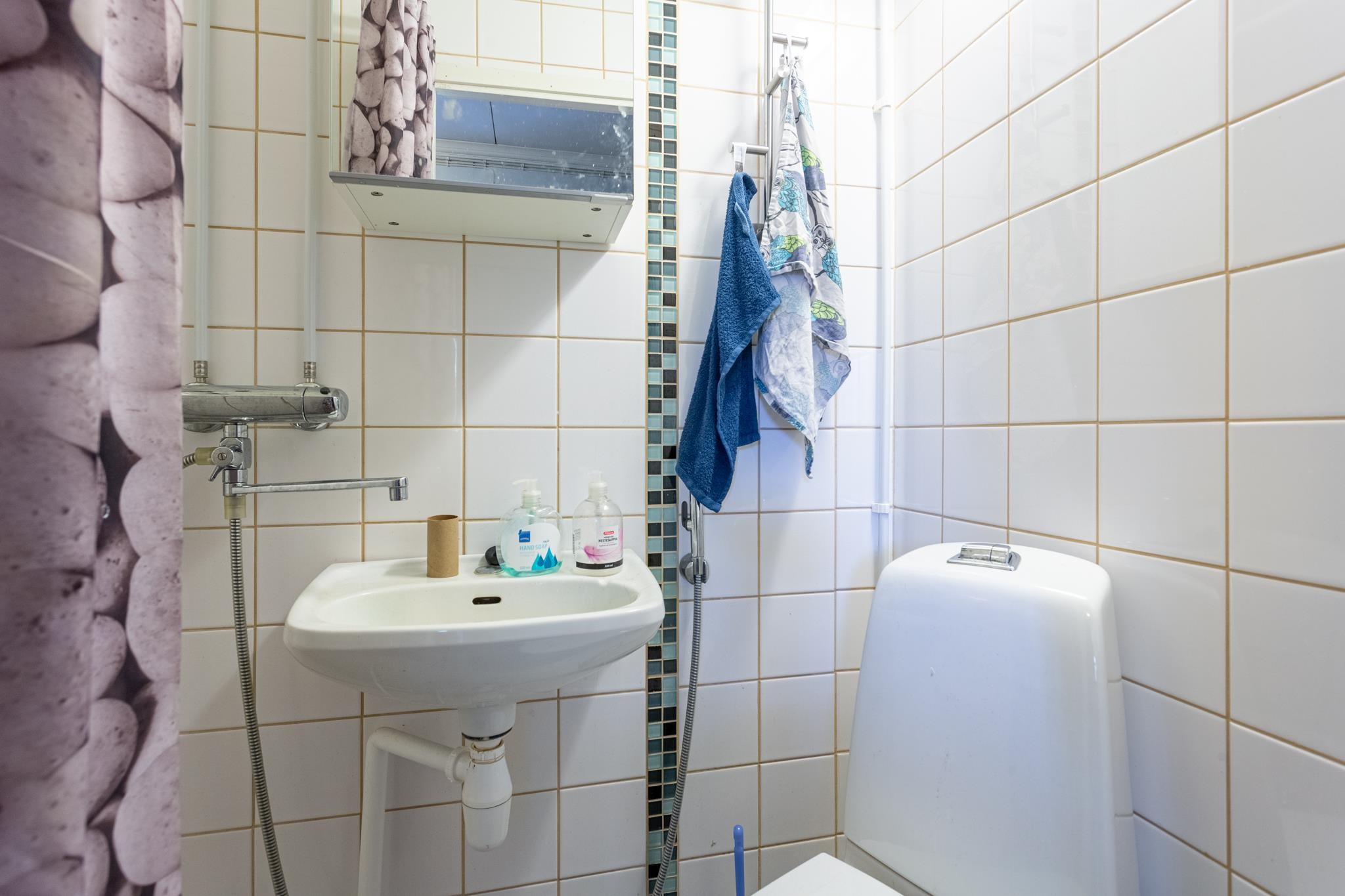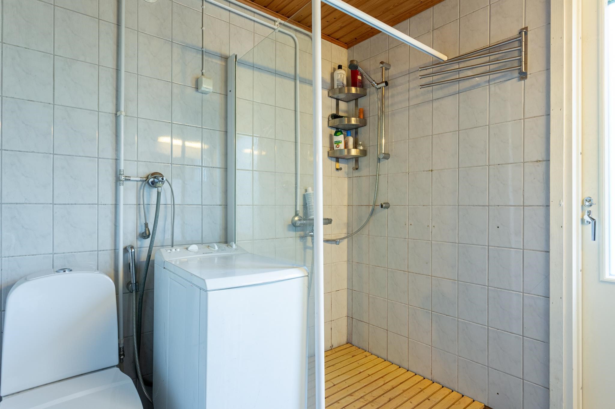 - Sauna, sähkökiuas, kylpyhuone, erillinen wc, suihkuseinä, peilit, peilikaappi, pesukoneliitäntä, kiinteät valaisimet, Kylpyhuonekaapisto.