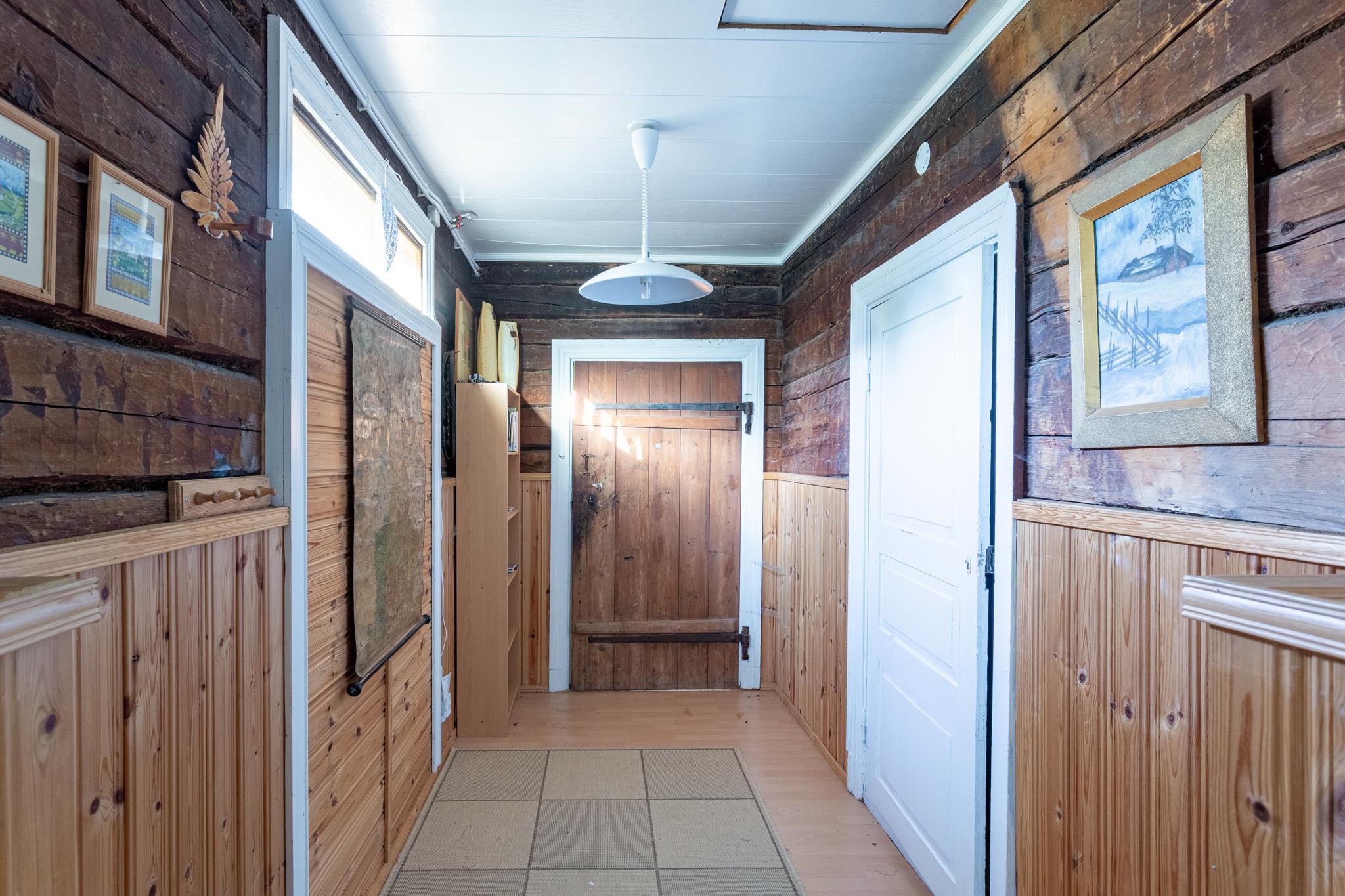 Keittiö: Laminaattilattia, puolipaneeli, hirsiseinä, levyt. Olohuone: Laminaattilattia, seinät tapetti. Makuuhuone 1: Laminaattilattia, seinät maali. Makuuhuone 2: Laminaattilattia, seinät tapetti/maali. Sauna: Lattia laatta, seinät puu. Kylpyhuone: Lattia epoksi, seinät laatta. Eteinen: Ulkoeteinen puulattia ja seinä, sisäeteinen laminaattilattia. Wc: Seinät laatta.