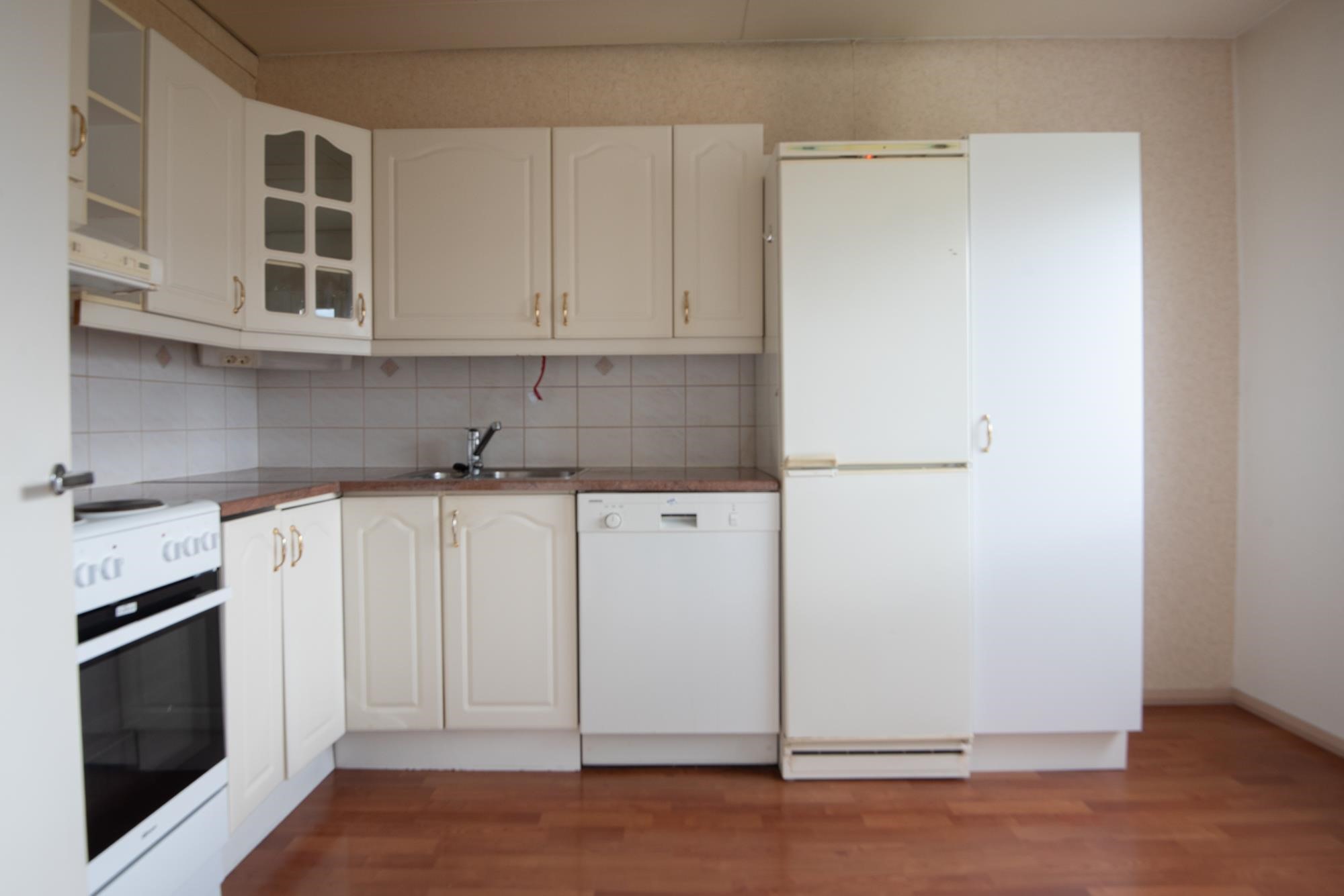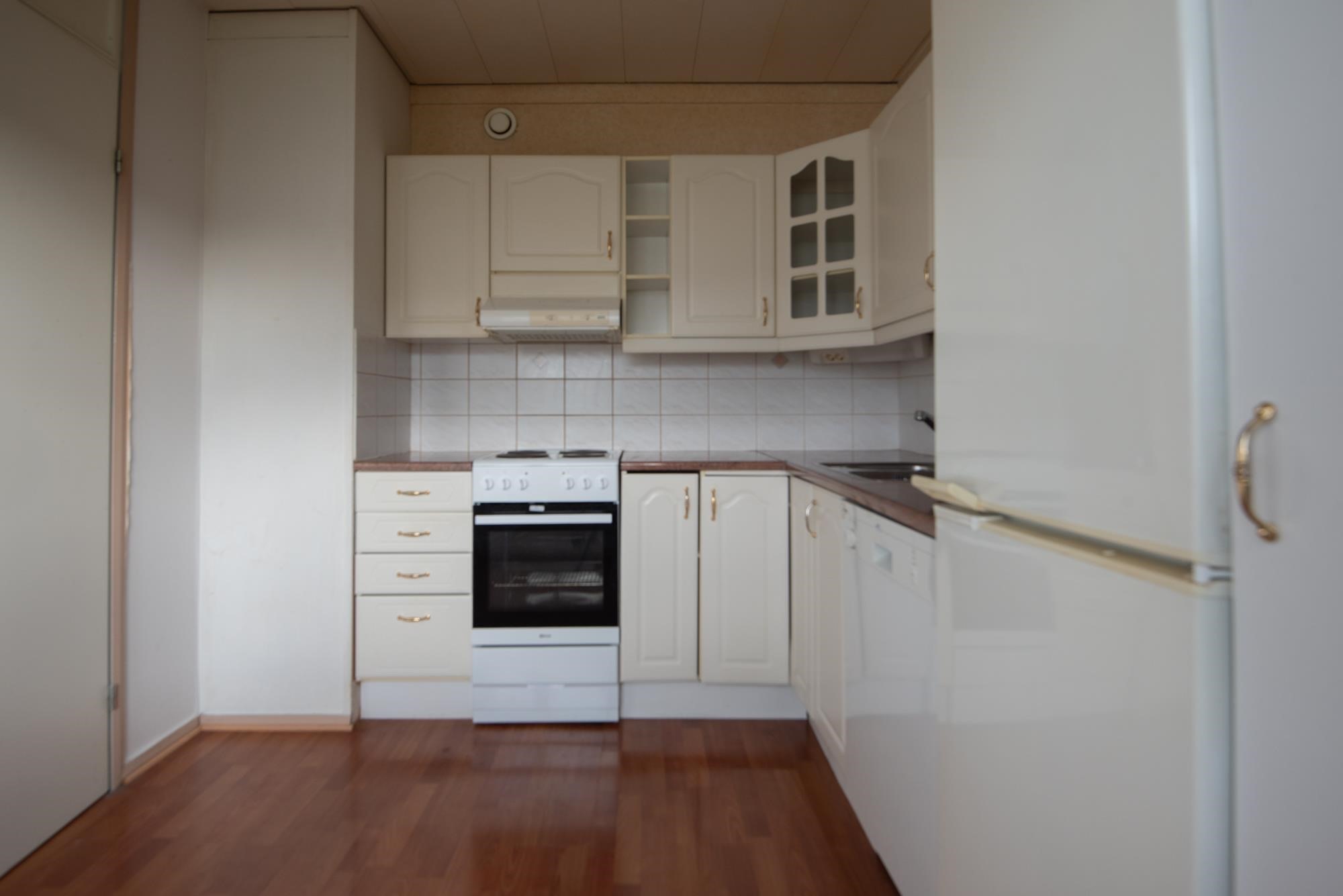 - Jääkaappipakastin, lattialiesi, liesikupu, astianpesukone, kaapistot.