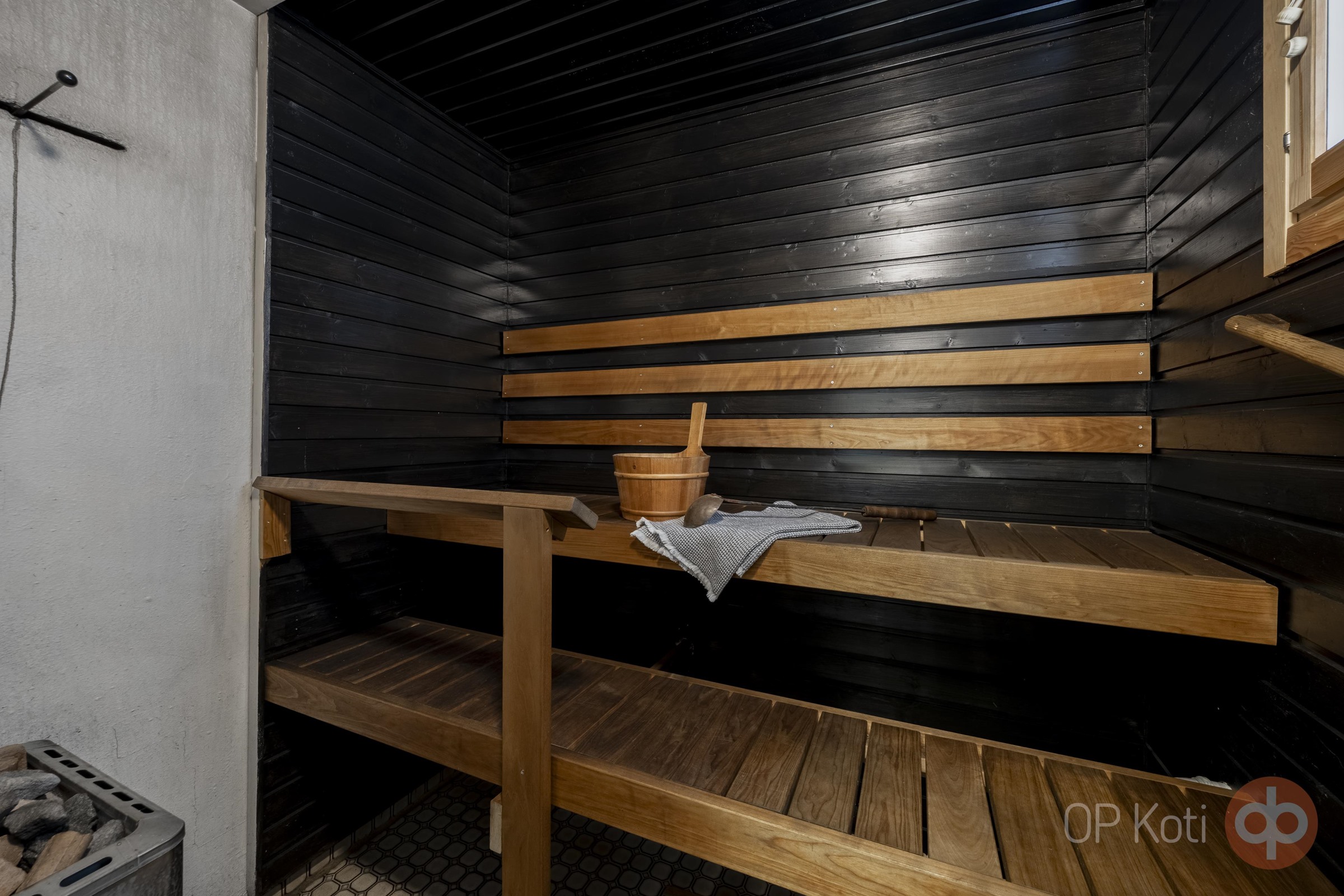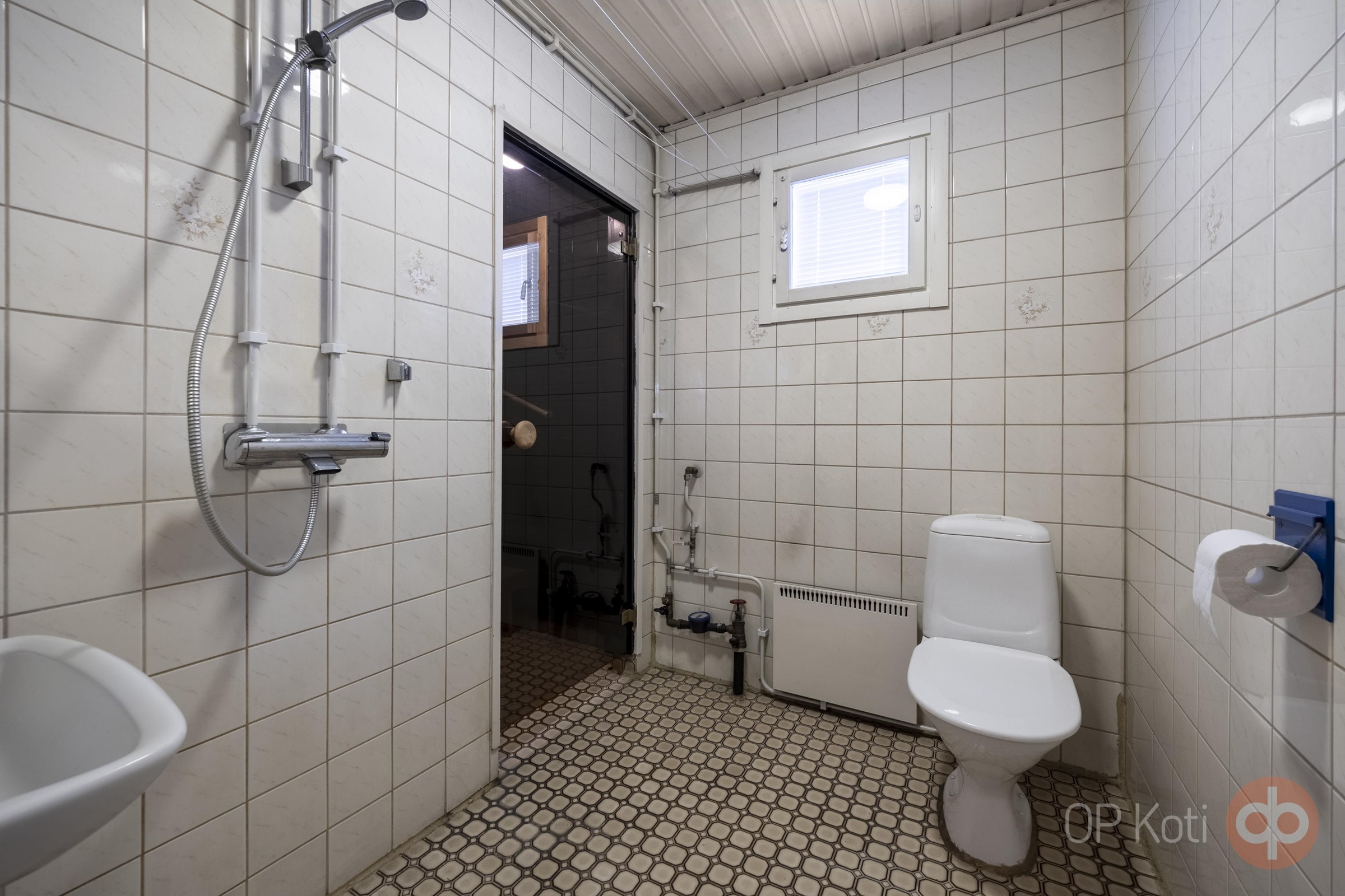 - Sauna, puukiuas, kylpyhuone, erillinen wc 2 wc:tä, suihku, peilikaappi, allaskaappi erillinen wc, lattialämmitys takkahuoneen puolella, kiinteät valaisimet.