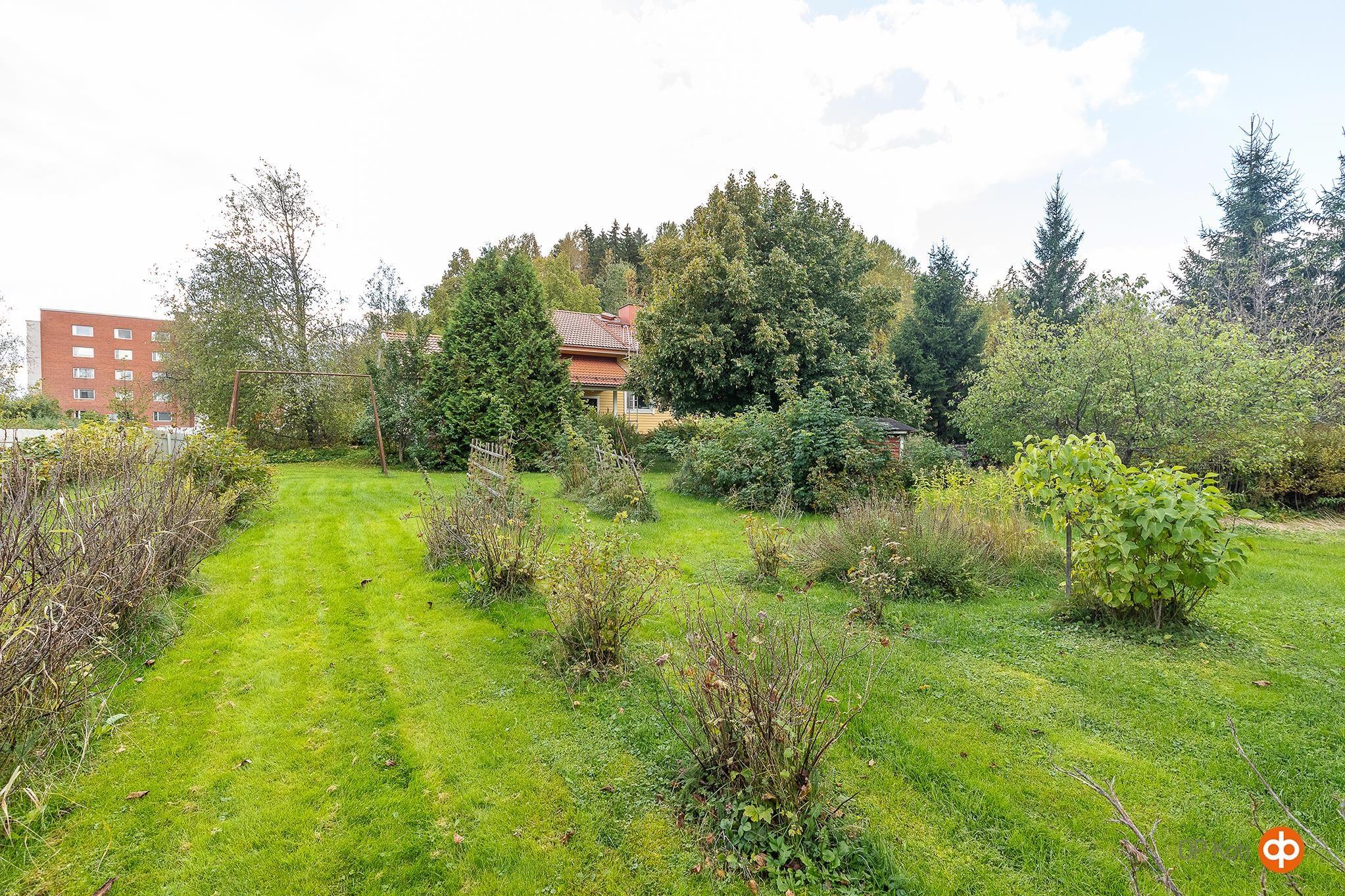 Omakotitalo sijaitsee asemakaava-alueelle poikkeuksellisen suurella ja vehreällä 2169 m² omalla tontilla. Rakennusoikeutta kiinteistöllä yhteensä ruhtinaalliset 542 m². Tontti rajoittuu pohjoisosaltaan kaupungin puistoalueeseen. Hieno ja suojaisa puutarhatontti pensaineen, puineen ja istutuksineen. Piha-alue luo hyvät puitteet koiraperheelle tai puutarhanhoidosta kiinnostuneelle multasormelle.