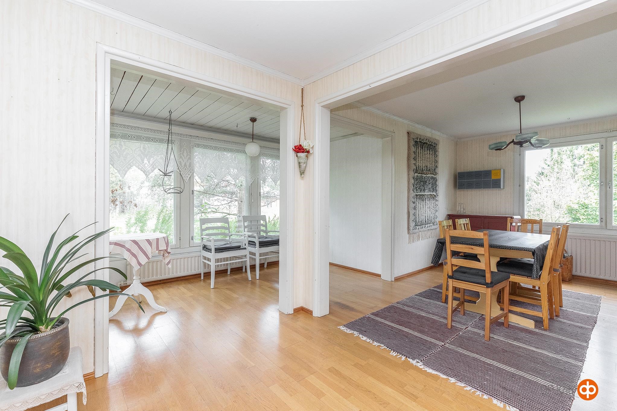 Viehättävä 1950-luvun lopulla valmistunut omakotitalo omalla etelä-pohjois suuntaan avautuvalla puutarhatontilla. Arkkitehtonisesti kaunis talo erkkereineen ja kattolippoineen, unohtamatta yläkerran makuuhuoneen yhteydessä olevaa pientä parveketta. Toimivat asuintilat kolmessa kerroksessa. Omakotitalo vaatii kokonaisvaltaista remonttia sisätilojen ja teknisten ratkaisujen osalta. Talo kuntotarkastettu syksyllä 2025. Vehreä lähes kokonaisuudessaan puuston suojaama tontti nurmialueineen, istutuksineen, puineen ja pensaineen. Kiinteistöllä kaupungin vesi- ja viemäröinti sekä alueella Salon kaupungin kaukolämpöverkko. Omakotitalo sijaitsee lähellä Perniön moninaisia palveluja mm. kaksi kauppaa 300 m säteellä, päiväkodit ja koulut kohtuullisen kävelymatkan etäisyydeltä. Talo vapautuu uudelle omistajalle kaupanteossa.