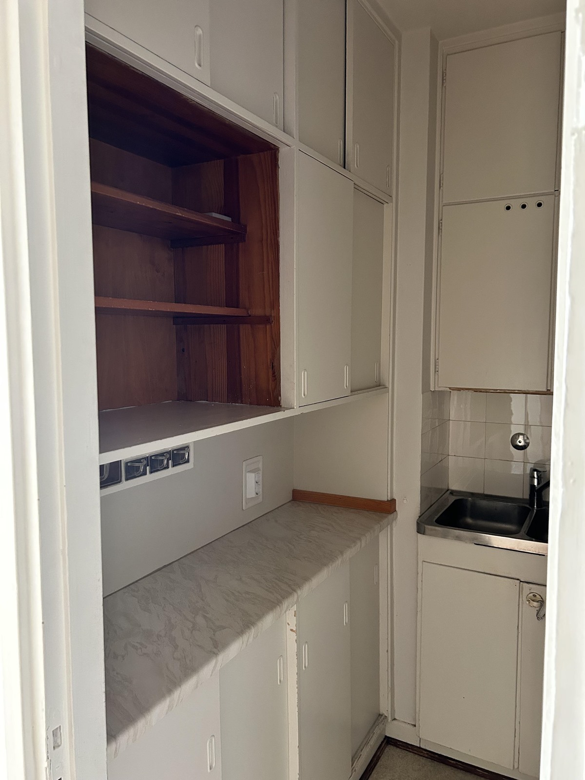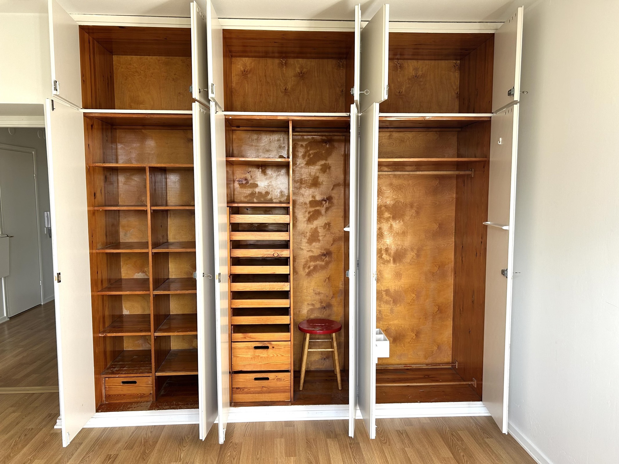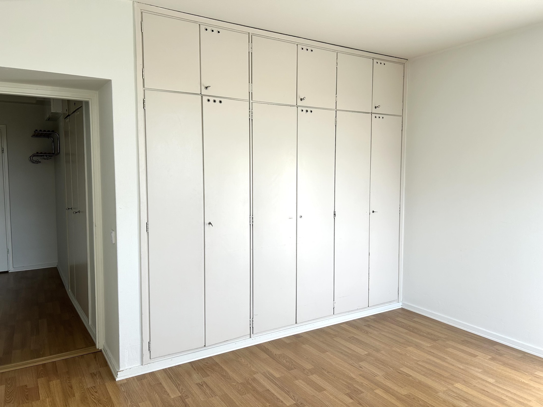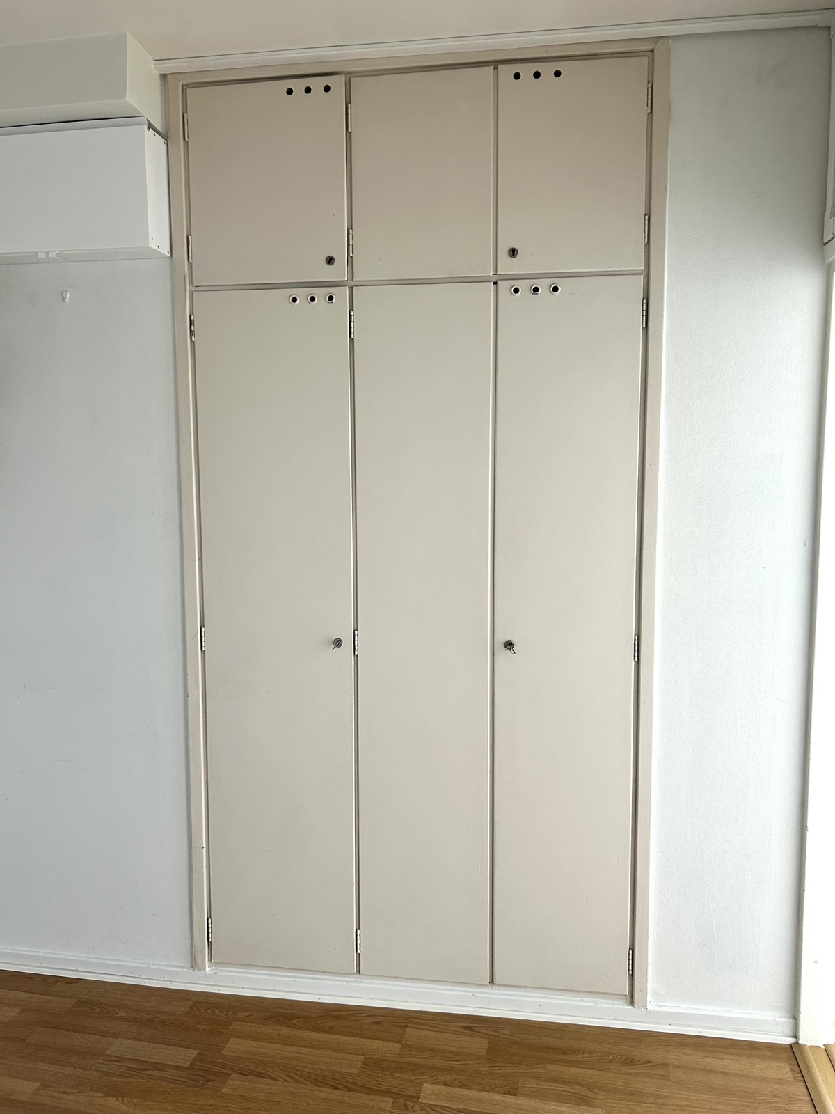 Keittokomero on kompakti, pohjaratkaisu ja kaapistot alkuperäiset massiivipuiset. Kodinkoneet on päivitetty, lattialiesi on keraaminen ja jääkaapissa on pakastelokero. Huoneistoon on vaihdettu lattiat noin viisi vuotta sitten, ne ovat laminaattia. Makuuhuoneessa on useampi komero ja lisäksi vuokralaisen käytössä on kellarikomero. Taloyhtiön pihalla on paikkoja polkupyörien säilytykselle, taloyhtiön kellarissa on pyörävarasto, mutta se on maksullinen, 24€/vuosi.