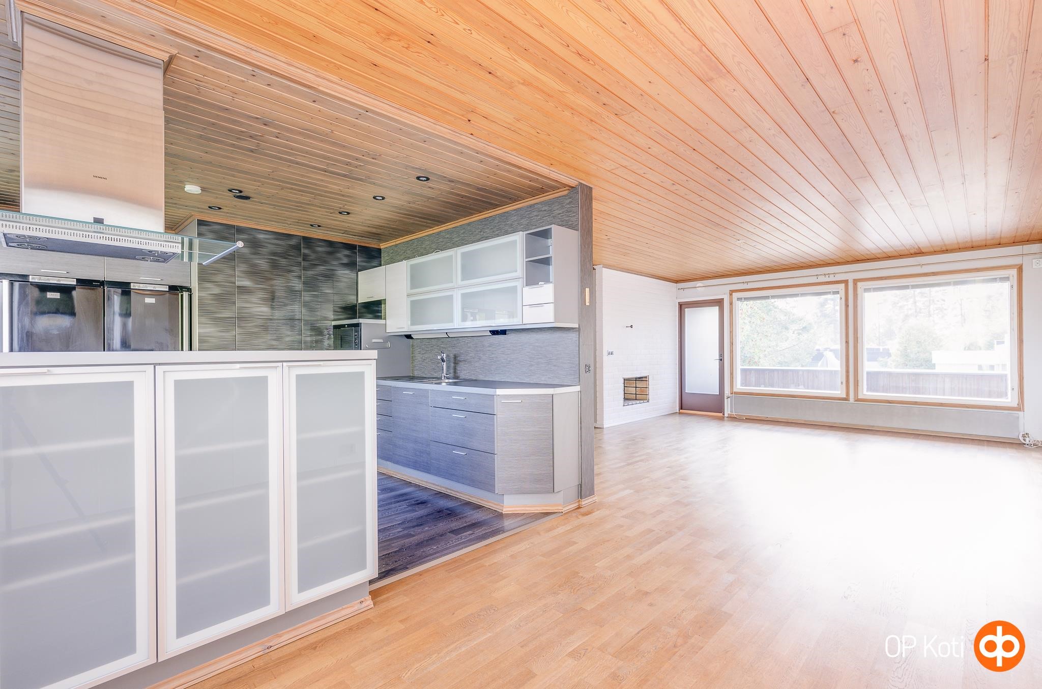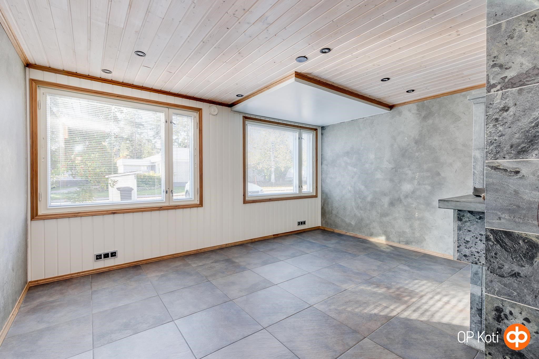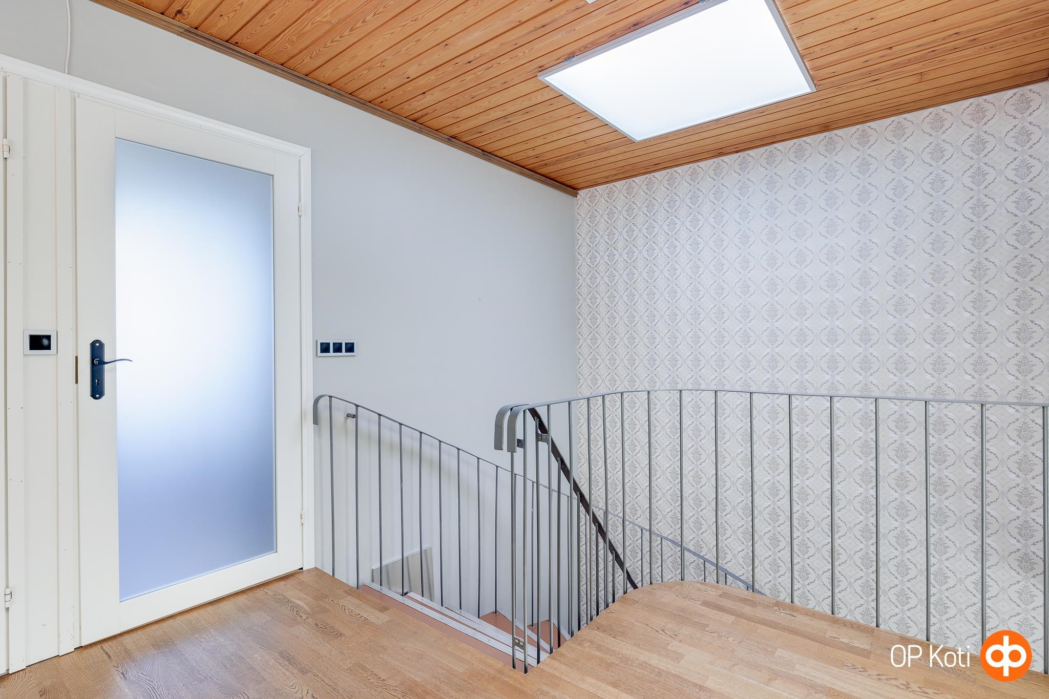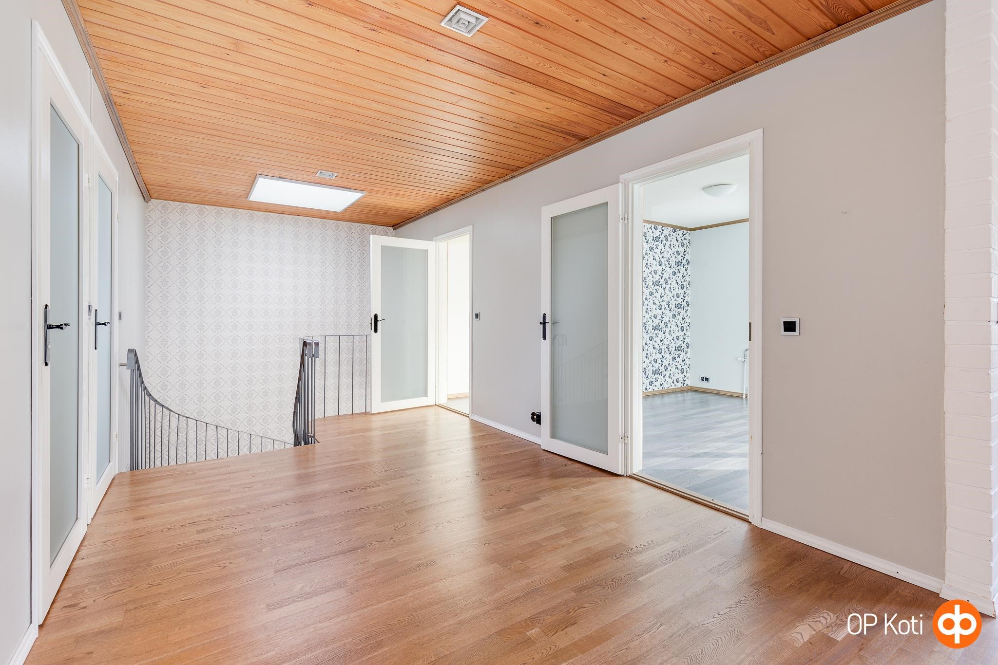 - Keittiö: Lattia laminaatti, seinät maalattu. Olohuone: Lattia tammiparketti, seinät maalattu. Makuuhuone 1: Lattia laminaatti, seinät maalattu/tapetoitu. Makuuhuone 2: Lattia laminaatti, seinät maalattu/tapetoitu. Makuuhuone 3: Lattia laminaatti, seinät maalattu/tapetoitu. Kodinhoitohuone: Laatoitettu. Sauna: Lattia laatoitettu, seinät puupaneeli. Kylpyhuone: Laatoitettu. Wc: Latoitettu. Ruokailutila ja ylähalli: Lattia tammiparketti, seinät maalattu