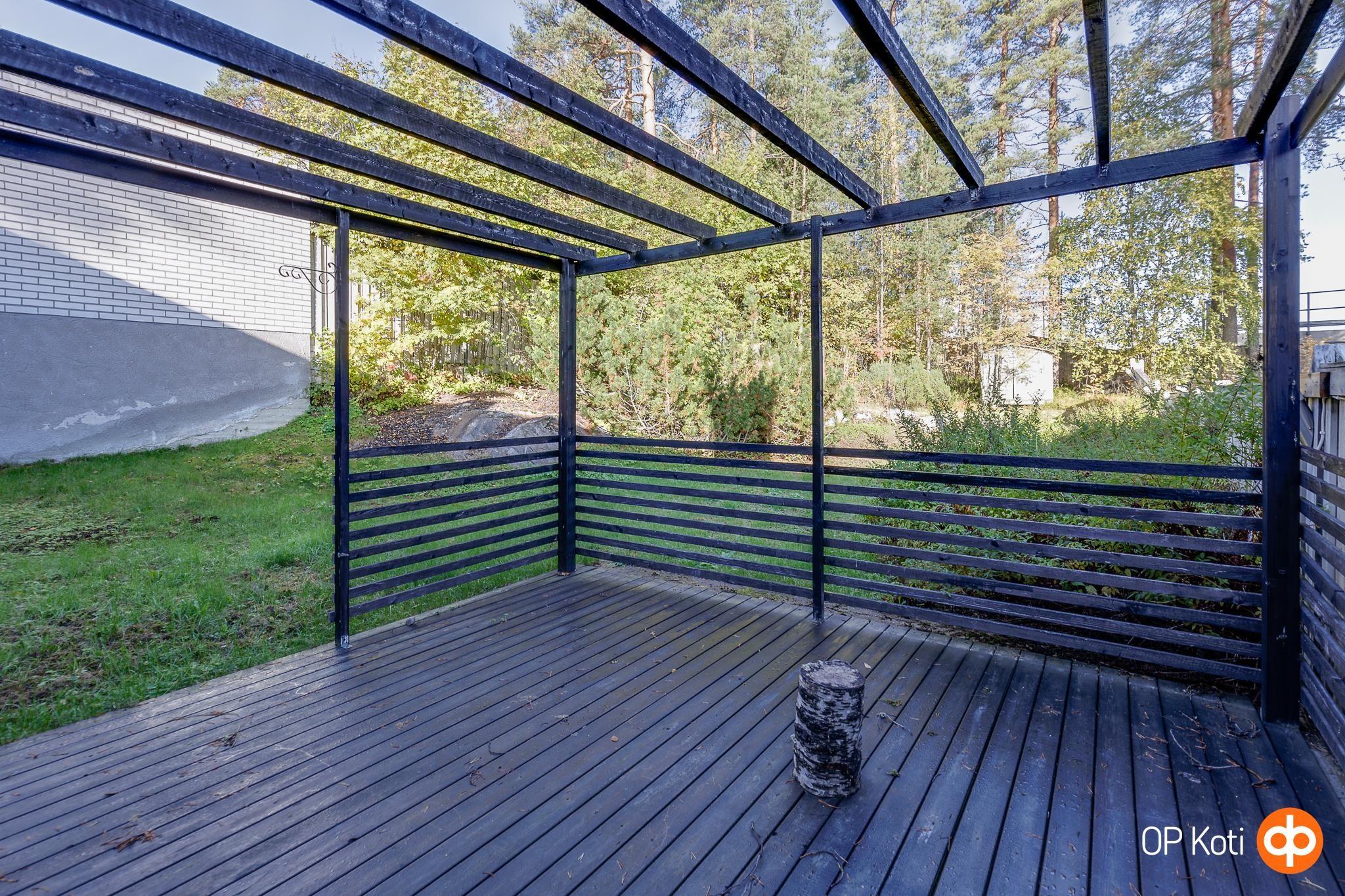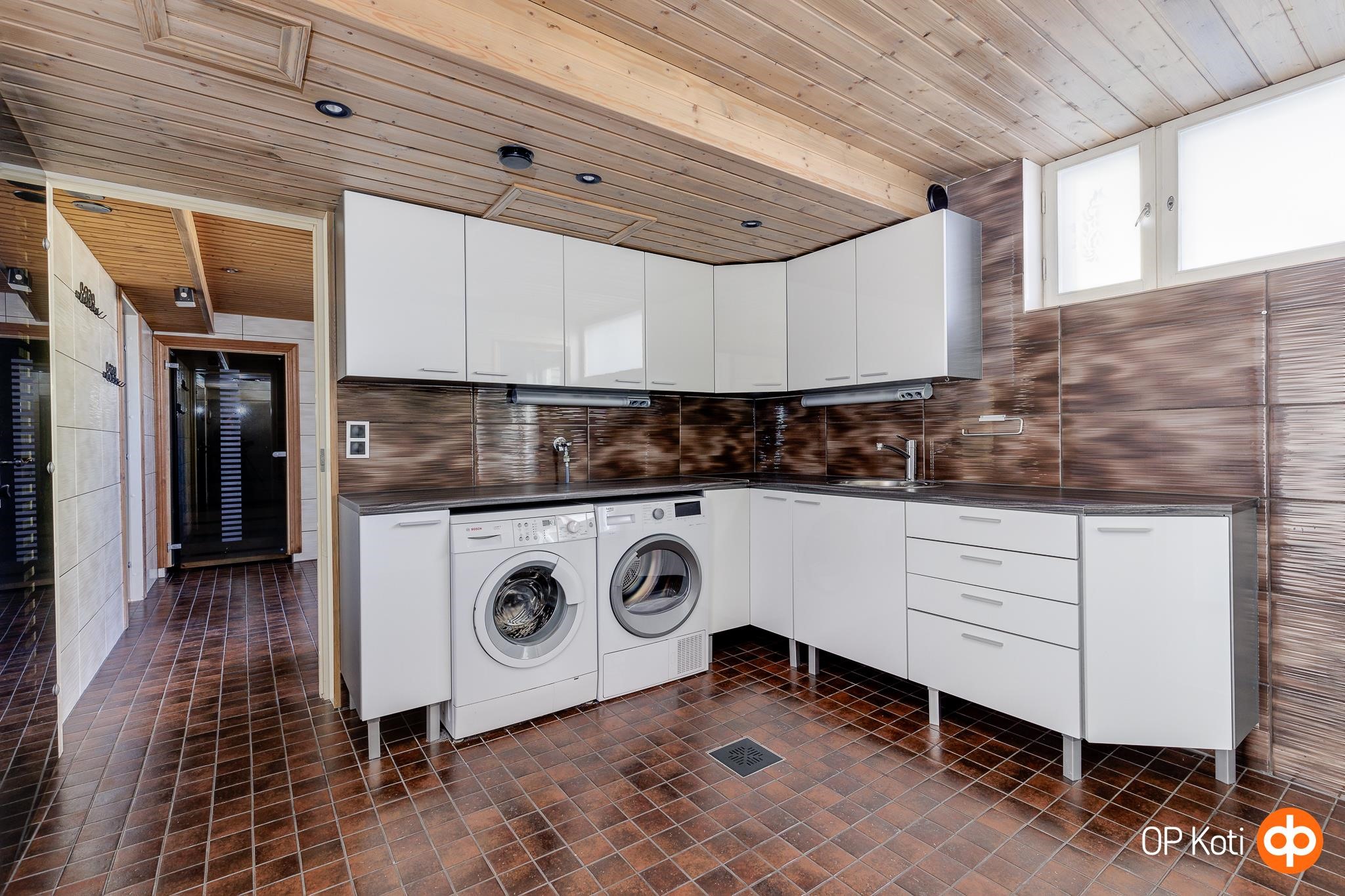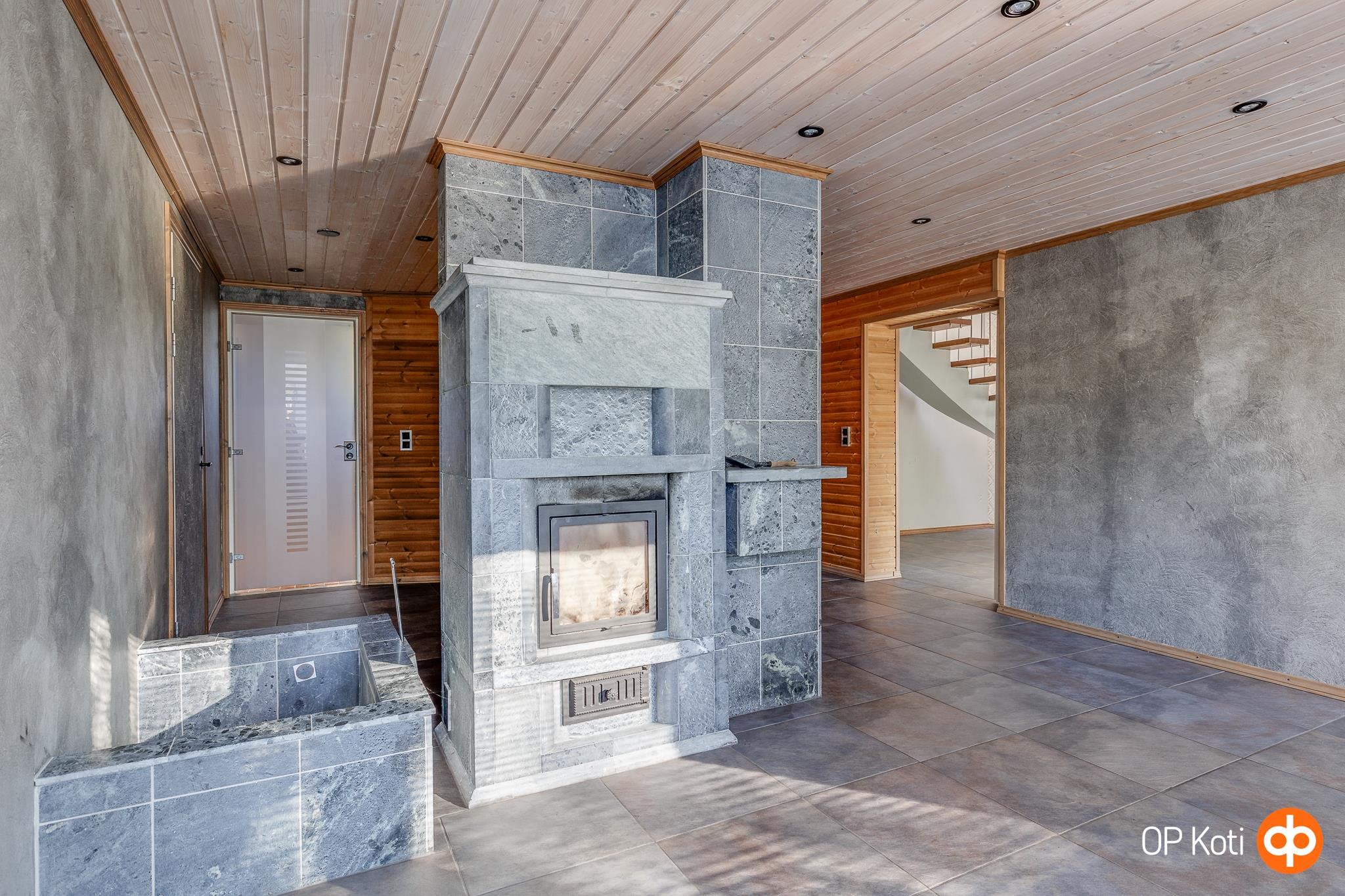 Tämä kodikas koti tarjoaa tilaa ja mukavuutta suuremmallekin perheelle. Kolme makuuhuonetta antavat jokaiselle perheenjäsenelle oman rauhallisen tilan, kun taas avara olohuone kutsuu yhteiseen ajanviettoon. Keittiö on varustettu moderneilla laitteilla, kuten induktioliedellä ja astianpesukoneella, mikä tekee arjen askareista vaivattomia. Alakerran takkahuone on ihanteellinen paikka rentoutua vuolukivisen varaavan takan äärellä, ja kodinhoitohuone tuo käytännöllisyyttä pyykkihuoltoon. Kylpyhuoneessa poreallas ja Harvian Saunatonttu sähkökiuas tarjoavat hemmottelua kiireisen päivän päätteeksi.