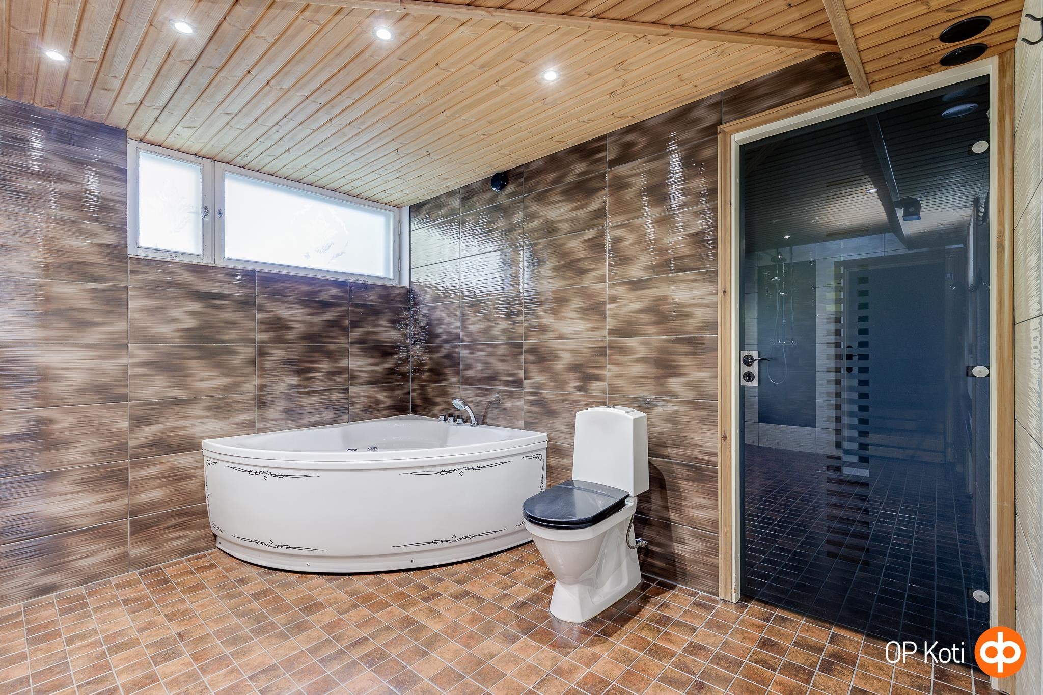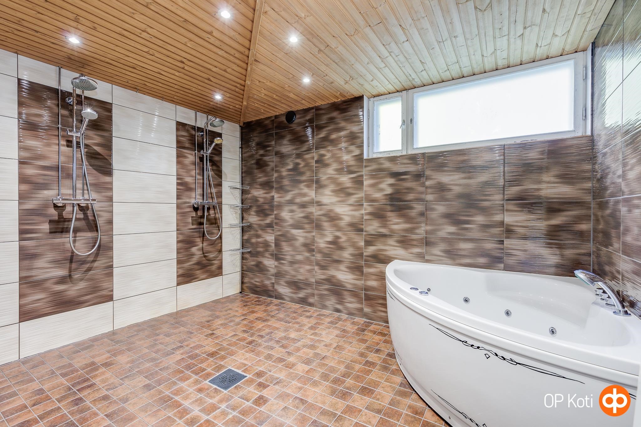 - Sauna, sähkökiuas Harvian Saunatonttu heti valmis, kylpyhuone, erillinen wc, suihku x2, poreallas, peilit, kaapit, allaskaappi, pesukoneliitäntä, lattialämmitys, kiinteät valaisimet.
