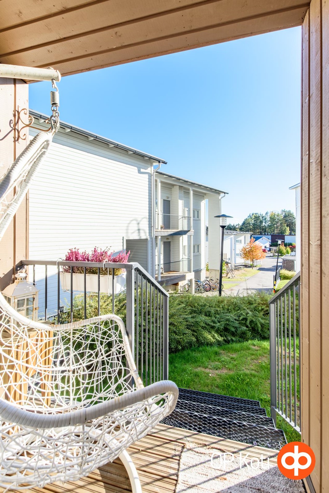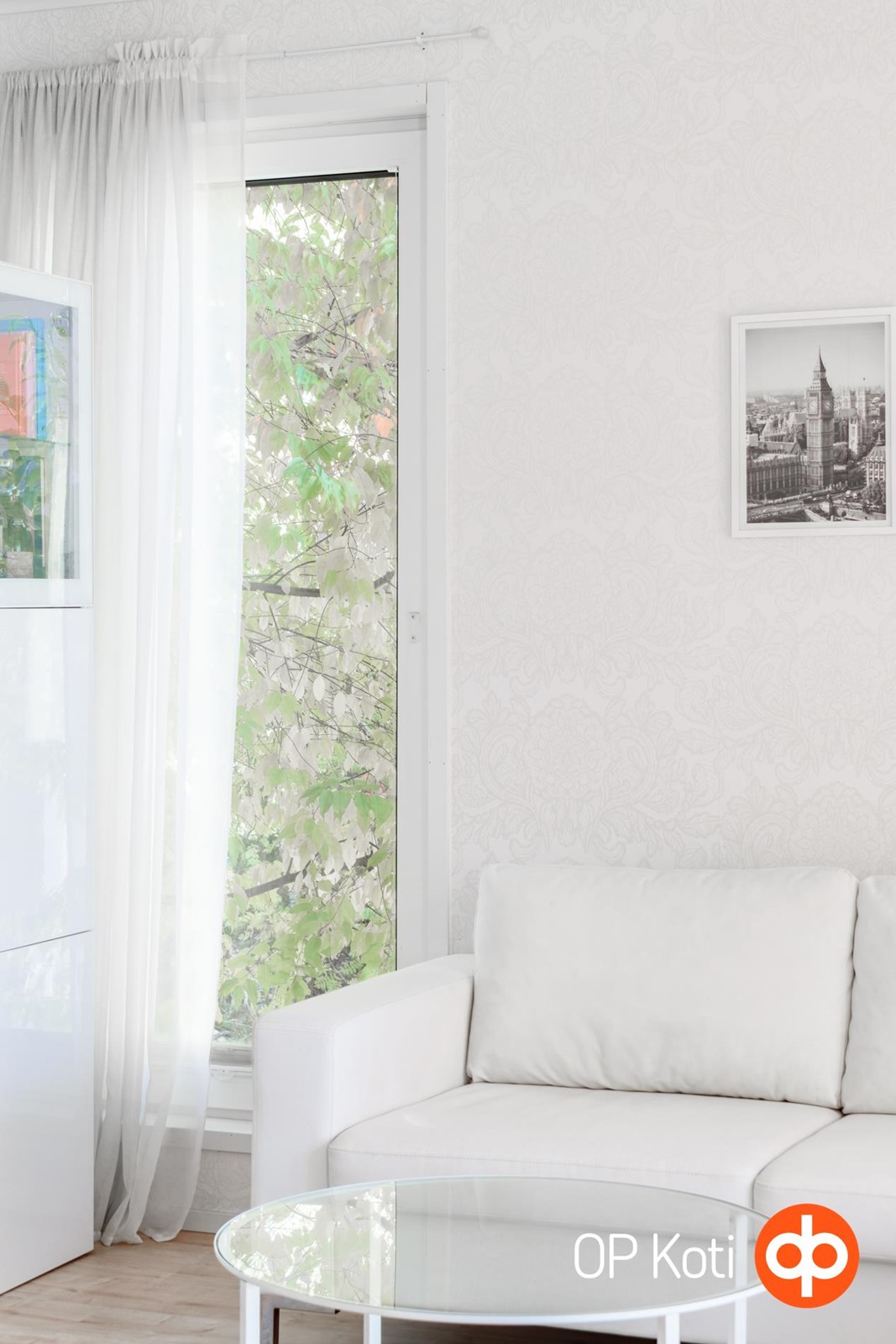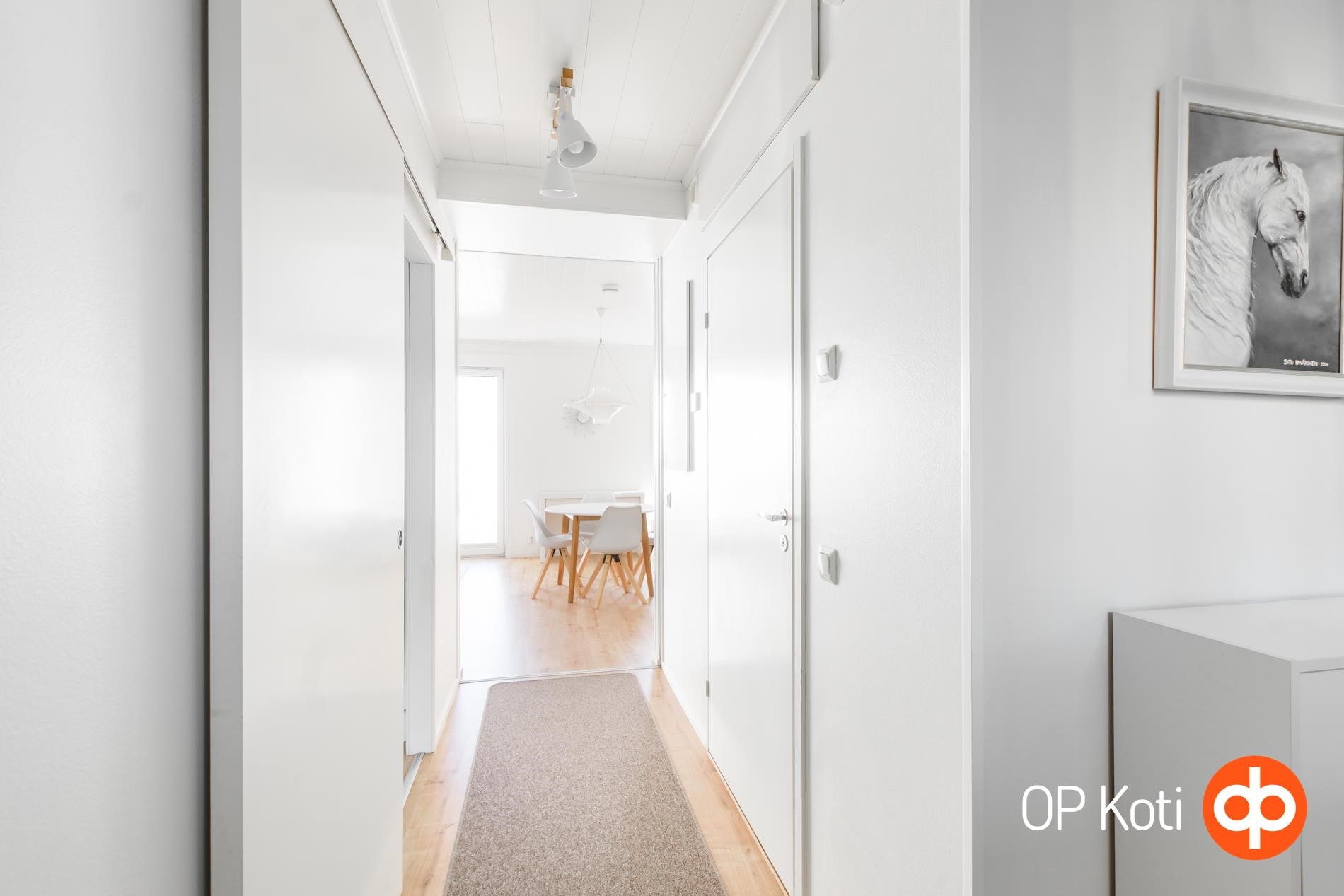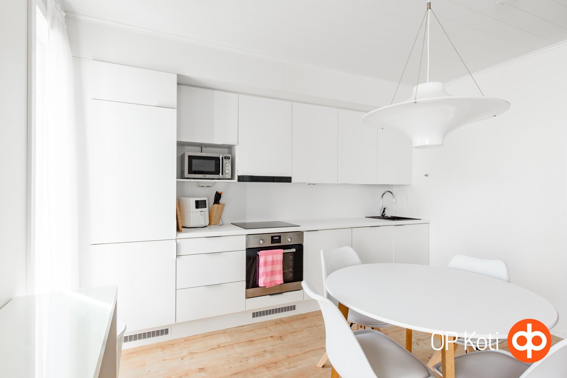 Tässä kauniissa luhtitalon ensimmäisen kerroksen kodissa on skandinaavisen vaalea värimaailma ja modernit materiaaliratkaisut. Keittiö ja olohuone muodostavat yhtenäisen kokonaisuuden. Päätyasunnon ikkunat avautuvat kolmelle ilmansuunnalle. Jäähdytyspumppu pitää asunnon sisäilman sopivan viileänä kesälläkin. Taloyhtiöllä on yhteiset viihtyisät saunatilat.