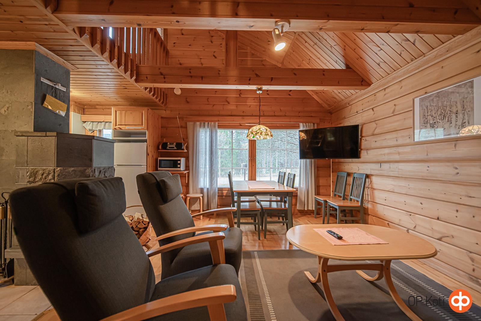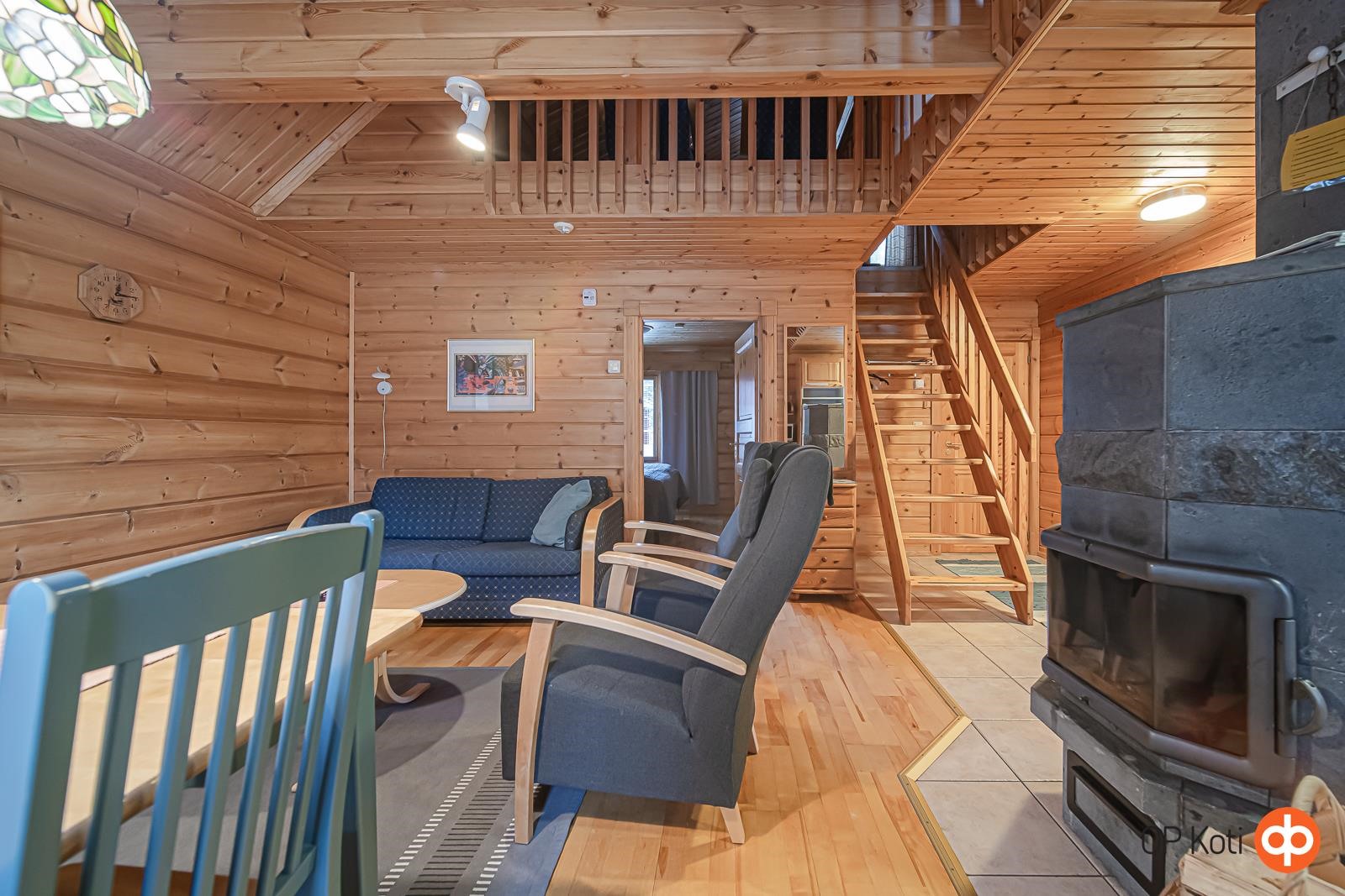 Paritalohuoneisto on ihanteellinen paikka rentoutua ja nauttia luonnosta, olitpa sitten aikeissa viettää lomaa perheen tai ystävien kanssa. Tuvan korkea huonekorkeus luo avaran tunnelman ja keskellä takka hohkaa lämpöä. Keittiössä on hyvä perusvarustus lomaruokien valmistukseen. Alhaalla on yksi makuuhuone, ja parvi tarjoaa mukavasti tilaa ainakin neljälle nukkujalle. Terassi ja piha-alue ovat omiaan kauniista säästä nauttimiseen.