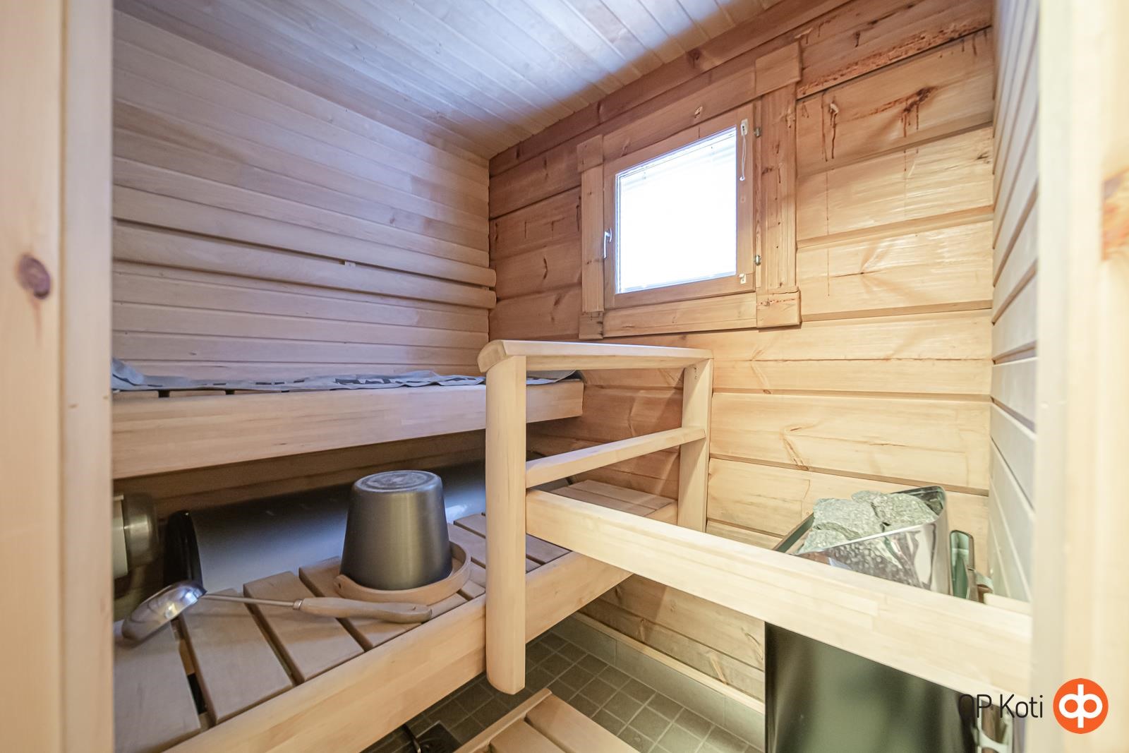- Sauna, sähkökiuas, kylpyhuone, erillinen wc, suihku, suihkuseinä (2025), pesukoneliitäntä, lattialämmitys.