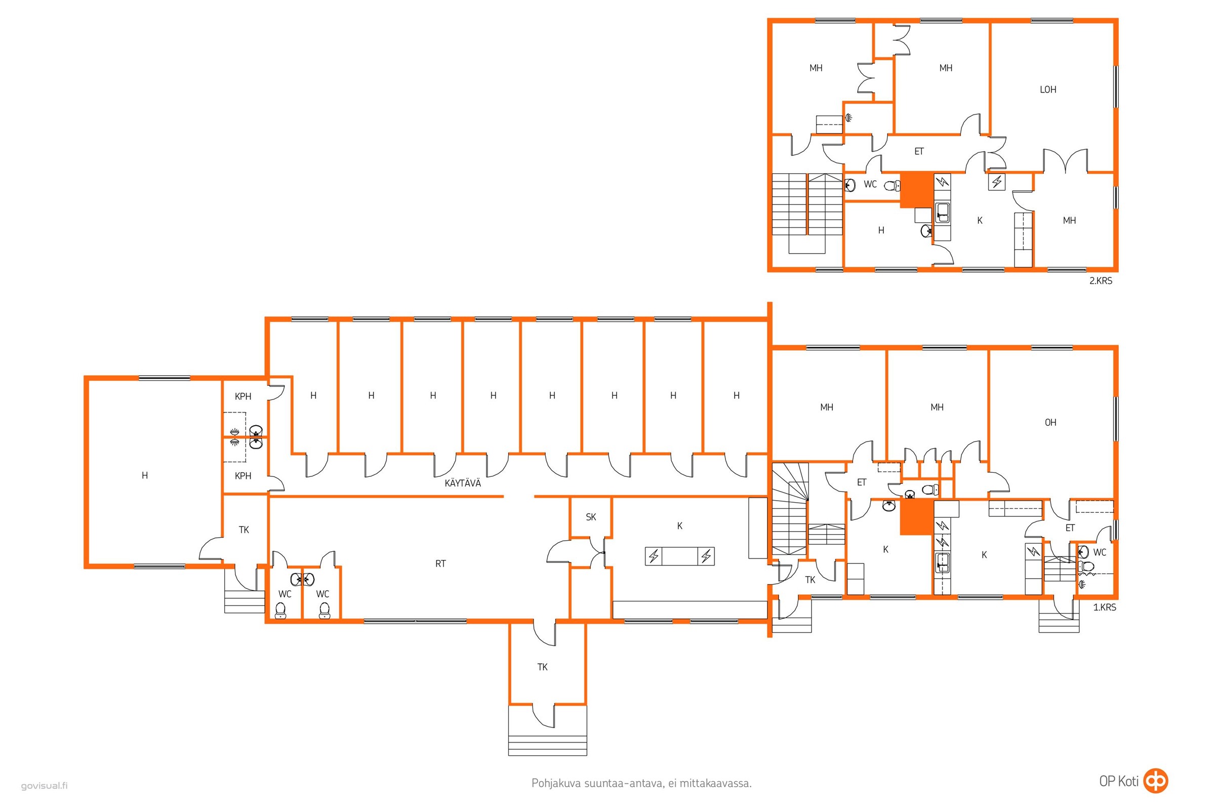 - 14 h, 2 x oh, 4 x k, 5 x wc, rt/aula + peseytymistilat