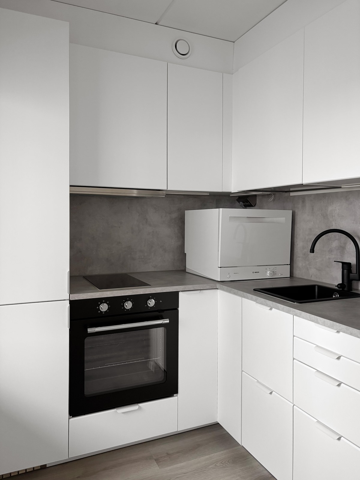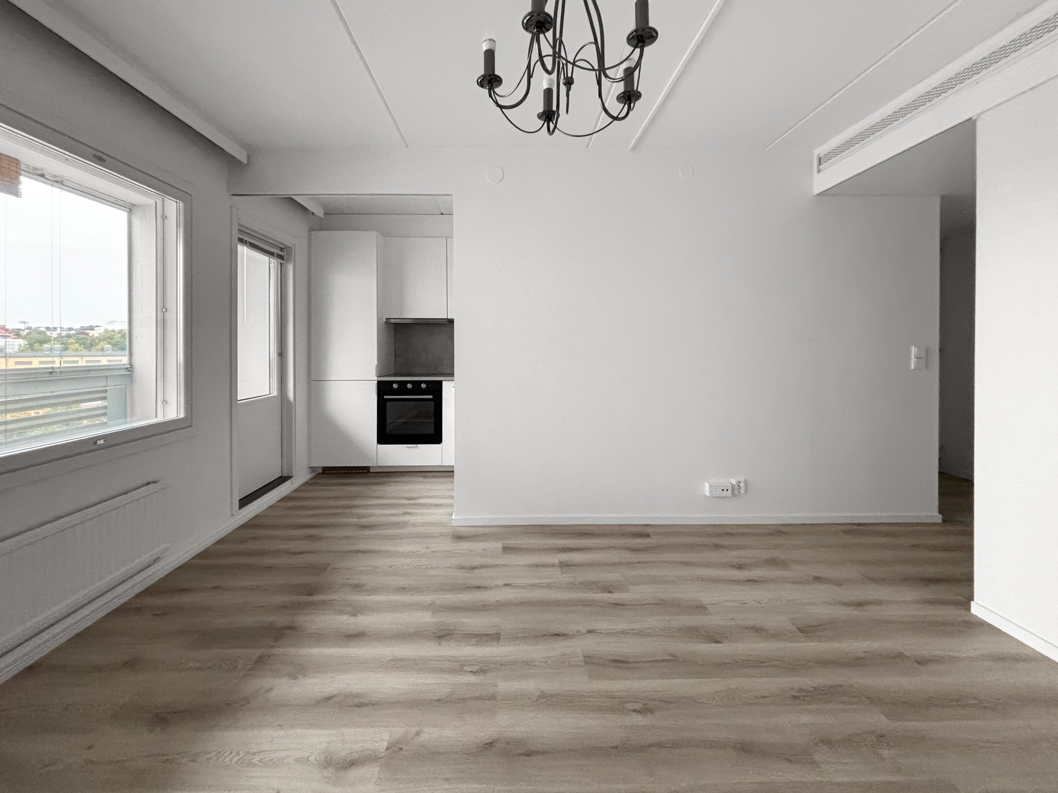 - Jääkaappipakastin, erillisuuni, induktioliesi, liesituuletin, astianpesukone, kaapistot, kiinteät valaisimet.