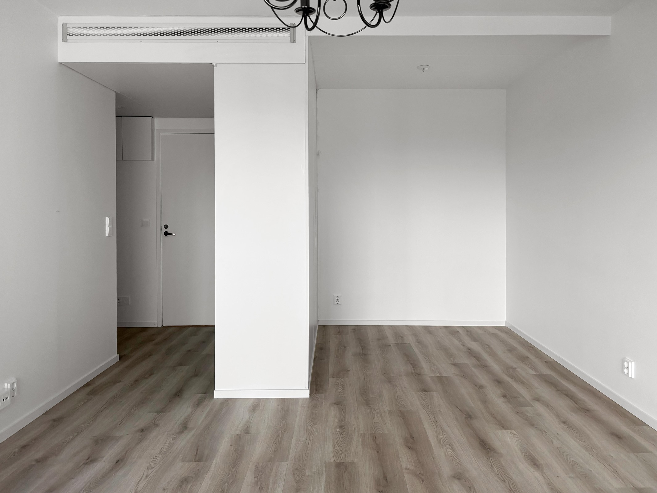 - Olohuone/keittiö: Lattia laminaatti, seinät maalattu. Kylpyhuone: Laatoitettu.