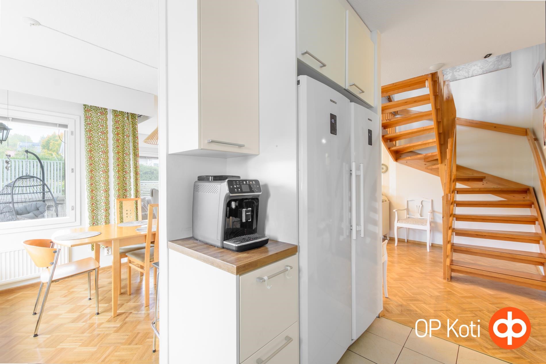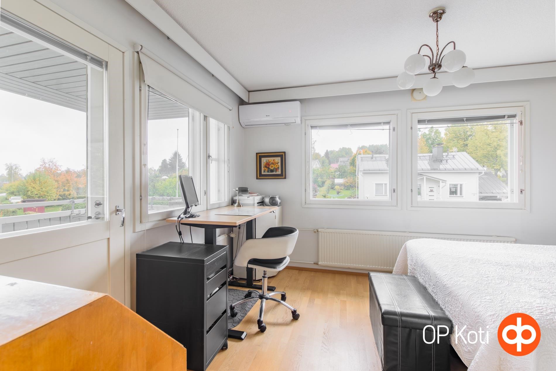 Huoneiston hyvä kunto, laadukkaat materiaalit ja varustelu tekevät siitä erinomaisen valinnan vaativallekin ostajalle. Asunnossa on viisi huonetta, keittiö ja sauna, jotka jakautuvat kahteen kerrokseen. Alakerrassa sijaitseva makuuhuone tarjoaa yksityisyyttä vaikka perheen teinille, kun taas yläkerran makuuhuoneet antavat rauhan muulle perheelle. Kaksi parveketta tuovat lisätilaa ja mahdollisuuden nauttia ympäröivästä maisemasta. Yläkerran ilmalämpöpumppu takaa mukavan sisäilman läpi vuoden.