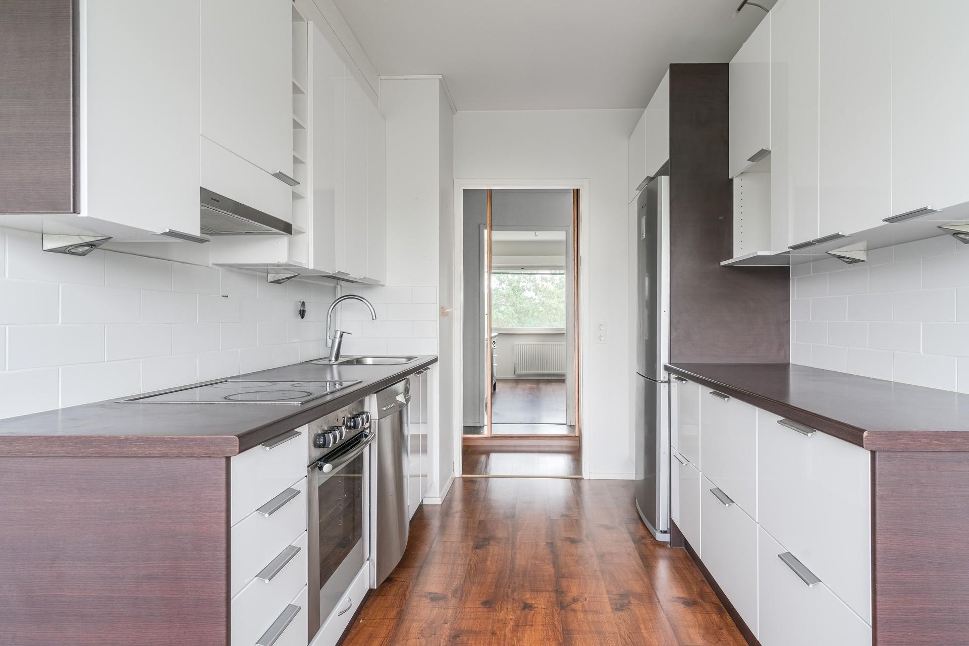 Kodikas ja valoisa läpitalon kaksio Laajasalon sydämessä - ei remonttihuolia! Tämä viihtyisä ja valoisa kaksio tarjoaa mukavaa asumista erinomaisella sijainnilla. Avara olohuone toimii kodin sydämenä - tilaa riittää niin rentoutumiseen kuin yhdessäoloon, ja suuret ikkunat tuovat runsaasti luonnonvaloa koko huoneistoon. Erillinen keittiö tarjoaa hyvät puitteet ruoanlaittoon, ja sinne mahtuu myös pieni ruokailuryhmä. Tilavassa makuuhuoneessa on reilusti kaappitilaa koko seinän leveydeltä. Kylpyhuone on remontoitu vuonna 2015 osana taloyhtiön laajaa linjasaneerausta, joten suuria remonttihuolia ei ole. Asunto sijaitsee ylimmässä, kolmannessa kerroksessa - ei hissiä. Hyvin hoidettu taloyhtiö ja viihtyisä pihapiiri. Vuonna 1966 valmistunut taloyhtiö on hoidettu suunnitelmallisesti, ja merkittäviä perusparannuksia on tehty, kuten LVIS-saneeraus vuosina 2014-2015. Yhtiössä on 106 asuinhuoneistoa, ja rakennukset sijoittuvat väljästi luonnonläheiseen ympäristöön. Asukkaiden käytössä ovat muun muassa vehreä pihapiiri, saunaosasto, grillikatos, talopesula, kuivaushuone, kellarikomerot, urheiluvälinevarastot, askarteluhuone, väestösuoja, kerhohuone, kuntosali sekä taloyhtiön laajakaista. Laajasalo - luonnonläheinen ja kehittyvä kaupunginosa. Laajasalo tarjoaa rauhallisen ja vihreän asuinympäristön, jossa arki sujuu vaivattomasti. Kaikki tarvittavat palvelut, koulut, päiväkodit ja ulkoilureitit löytyvät kävelyetäisyydeltä. Tullisaaren puisto, Pyysaari, Kruunuvuorenlampi ja Stansvikin merelliset ulkoilumaastot tekevät alueesta erityisen houkuttelevan luonnon ystäville. Kruunusillat-hanke tuo alueelle suoran raitiovaunuyhteyden Helsingin keskustaan - matka taittuu noin 15 minuutissa. Lähin pysäkki sijaitsee jo valmiina Henrik Borgströmintien ja Koirasaarentien risteyksessä.