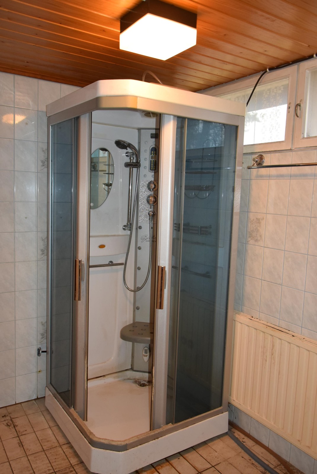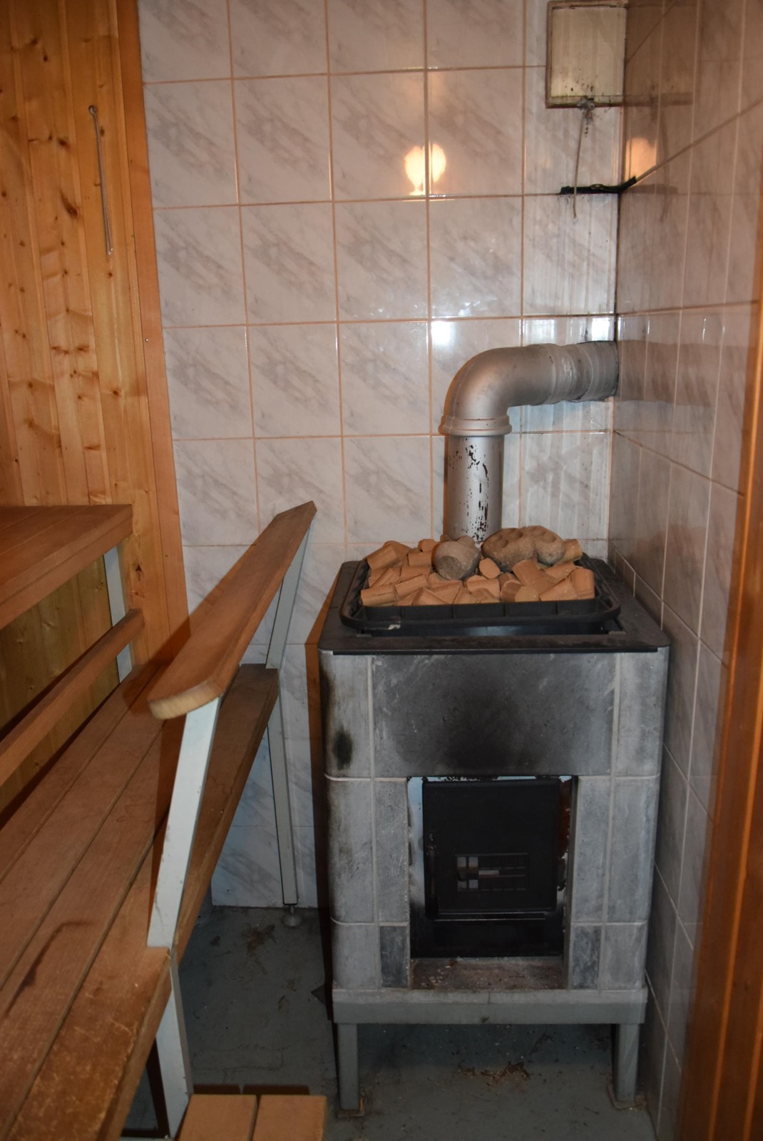 - Sauna, puukiuas, kylpyhuone, erillinen wc, suihku, suihkukaappi, peilit, peilikaappi, allaskaappi, pesukoneliitäntä, kiinteät valaisimet.