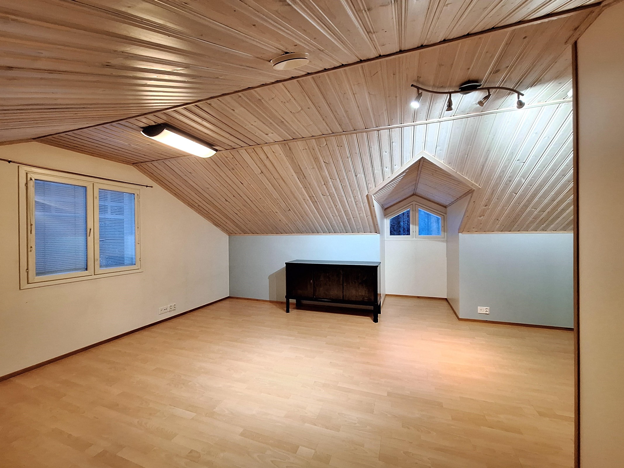 - Lattiat: Alakerrassa parketti/laatta ja yläkerrassa laminaatti. Seinät: Maali. Kh,khh,wc: Laatta/maali.