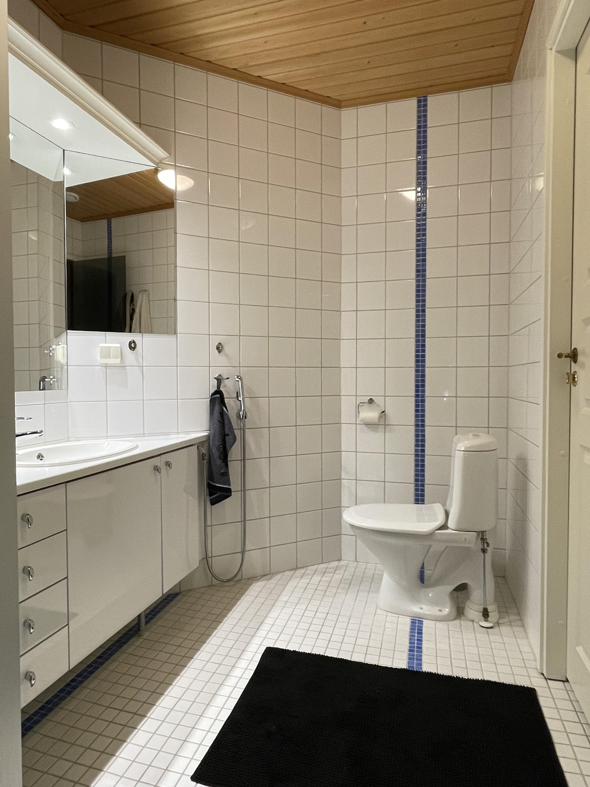 - Sauna, sähkökiuas, kylpyhuone, erillinen wc, suihku, suihkuseinä, peilit, allaskaappi, pesukoneliitäntä, lattialämmitys, kiinteät valaisimet.