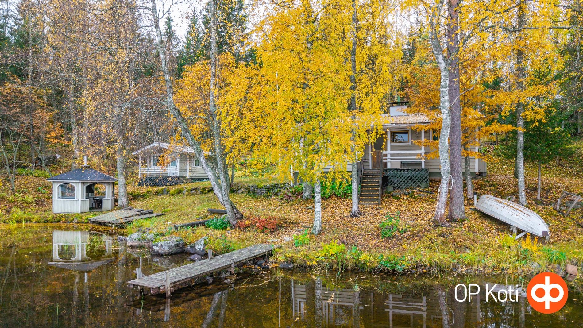 Erillinen autotalli tuo lisää säilytystilaa tai harrastusmahdollisuuksia, ja grillikatos kutsuu viettämään kesäiltoja hyvässä seurassa. Laituri rannassa viimeistelee mökkitunnelman. Täällä nautit aamu-uinnista tai kalastuksesta omassa rauhassa.