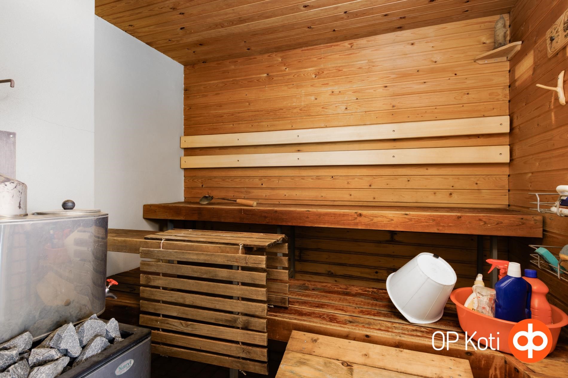 - Sauna, puukiuas, kylpyhuone, suihku, kiinteät valaisimet. Biowc