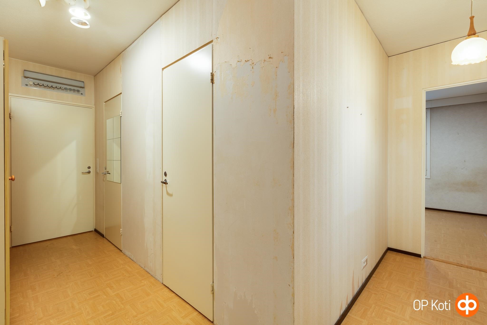 - Keittiö: muovimatto / maalattu. Olohuone: muovimatto / tapetti. Makuuhuone 1: muovimatto / tapetti. Kylpyhuone: muovimatto? / muovitapetti. Eteinen: muovimatto / tapetti.