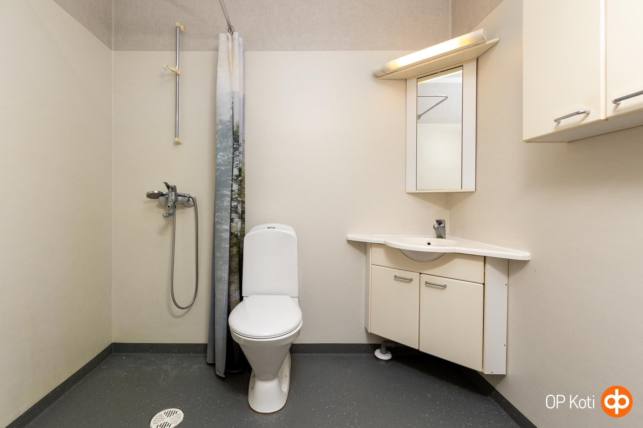- Kylpyhuone, suihku, peilikaappi, kaapit, allaskaappi, pesukoneliitäntä, kiinteät valaisimet.