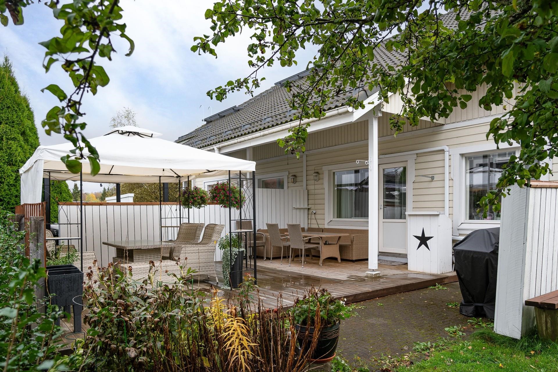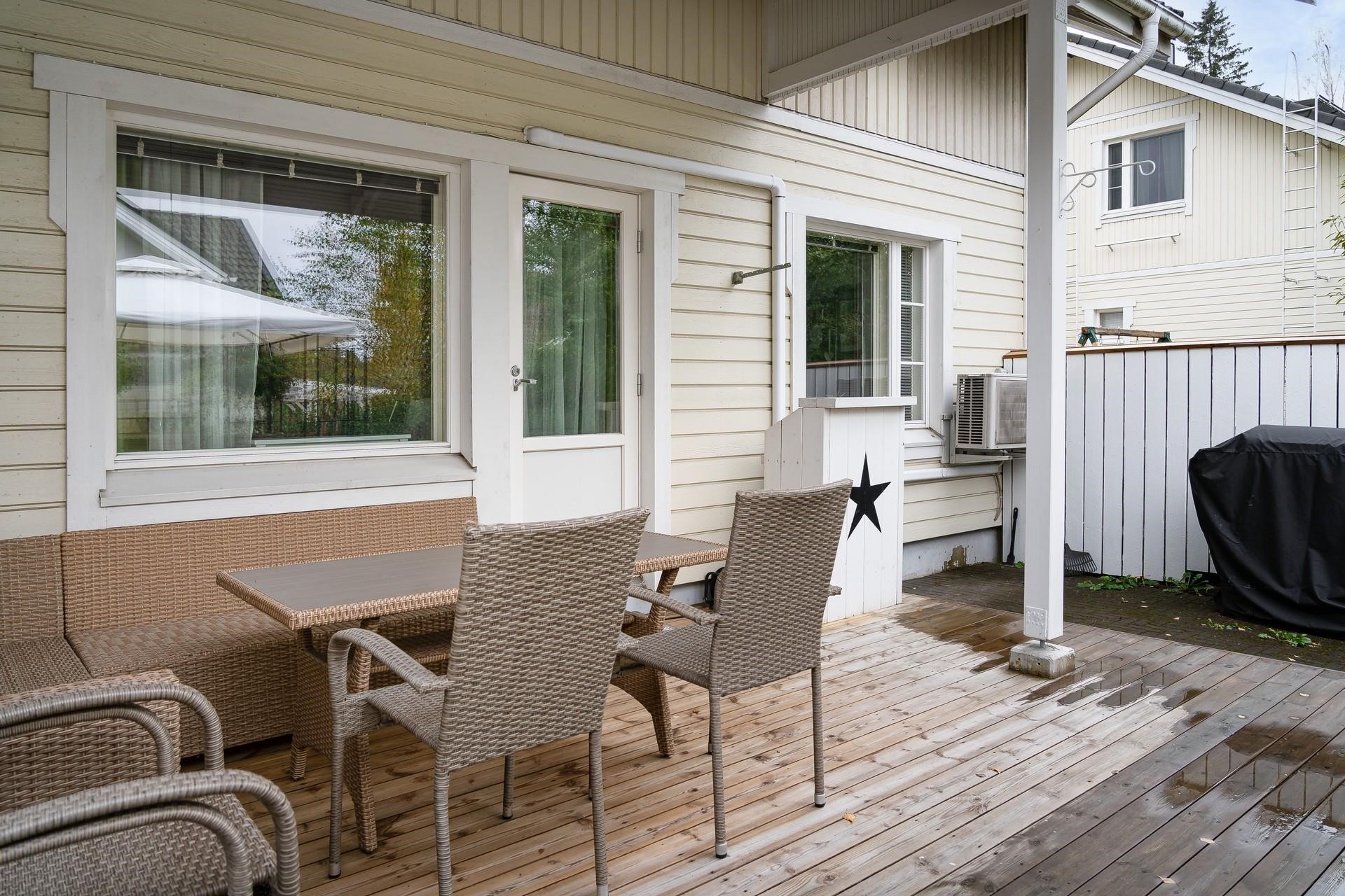 Asunnon tilat ja varustelu eivät jätä toivomisen varaa. 105 neliömetriä tarjoaa tilavat huoneet, jotka on jaettu kahdelle kerrokselle. Yläkerrassa sijaitsee kaksi tilavaa makuuhuonetta sekä saniteettitilat, jotka on remontoitu vuonna 2015. Alakerrasta löydät kodin kolmannen makuuhuoneen, joka tarjoaa rauhallisen paikan levähtämiseen. Keittiö on varusteltu nykyaikaikaisesti varusteltu. Remontoitu sauna tuo arjen luksusta. Helppohoitoinen terassipiha kutsuu nauttimaan ulkoilmasta vaivattomasti.