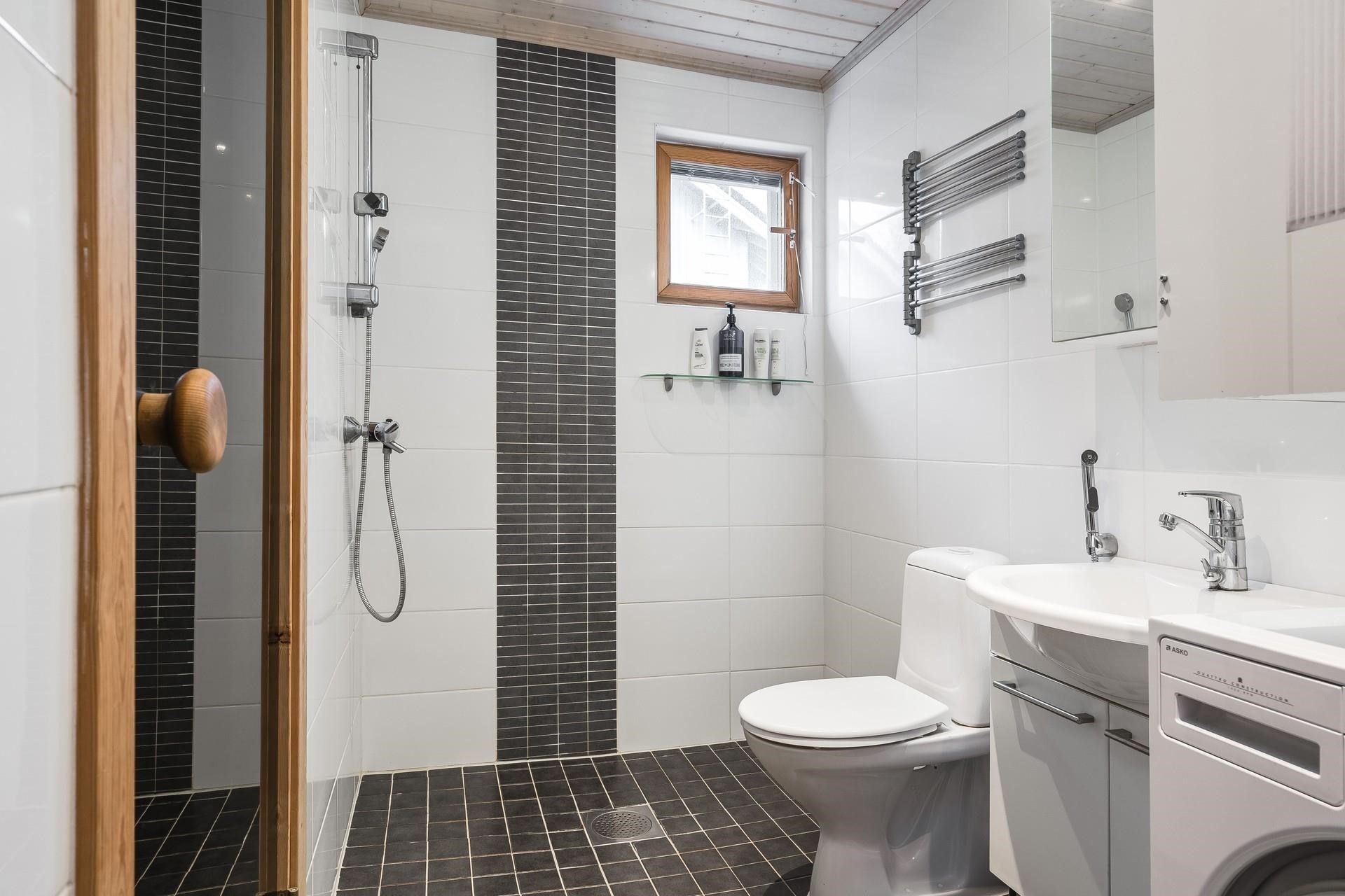 - Sauna, sähkökiuas Heti valmis, kylpyhuone, erillinen wc, suihku, peilikaappi, kaapit, allaskaappi, pesukoneliitäntä, lattialämmitys, kiinteät valaisimet. Sauna remontoitu 2021, yläkerran kylpyhuone/wc uusittu 2015