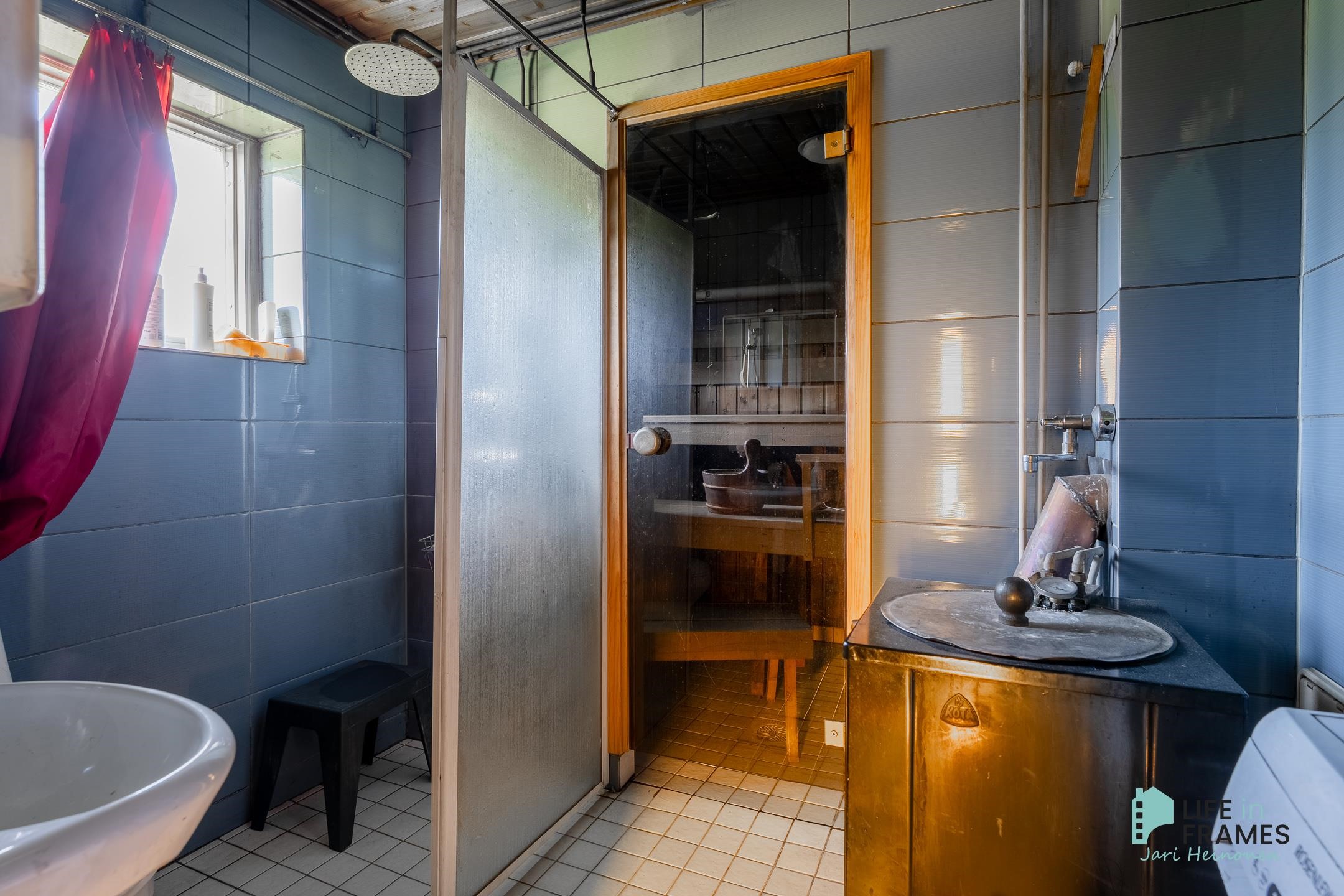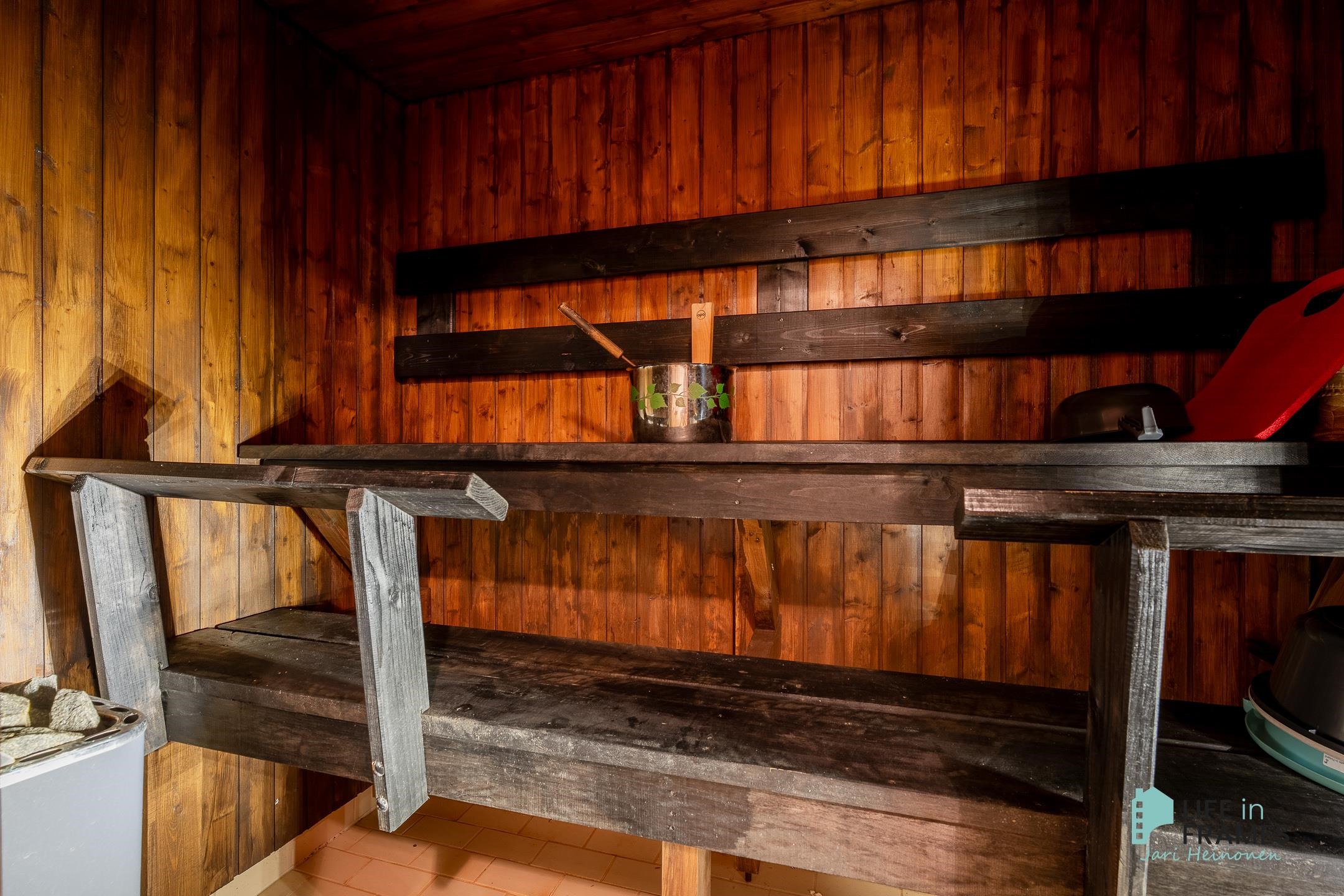 - Sauna, sähkökiuas, kylpyhuone, erillinen wc, suihku, pesukoneliitäntä, kiinteät valaisimet.