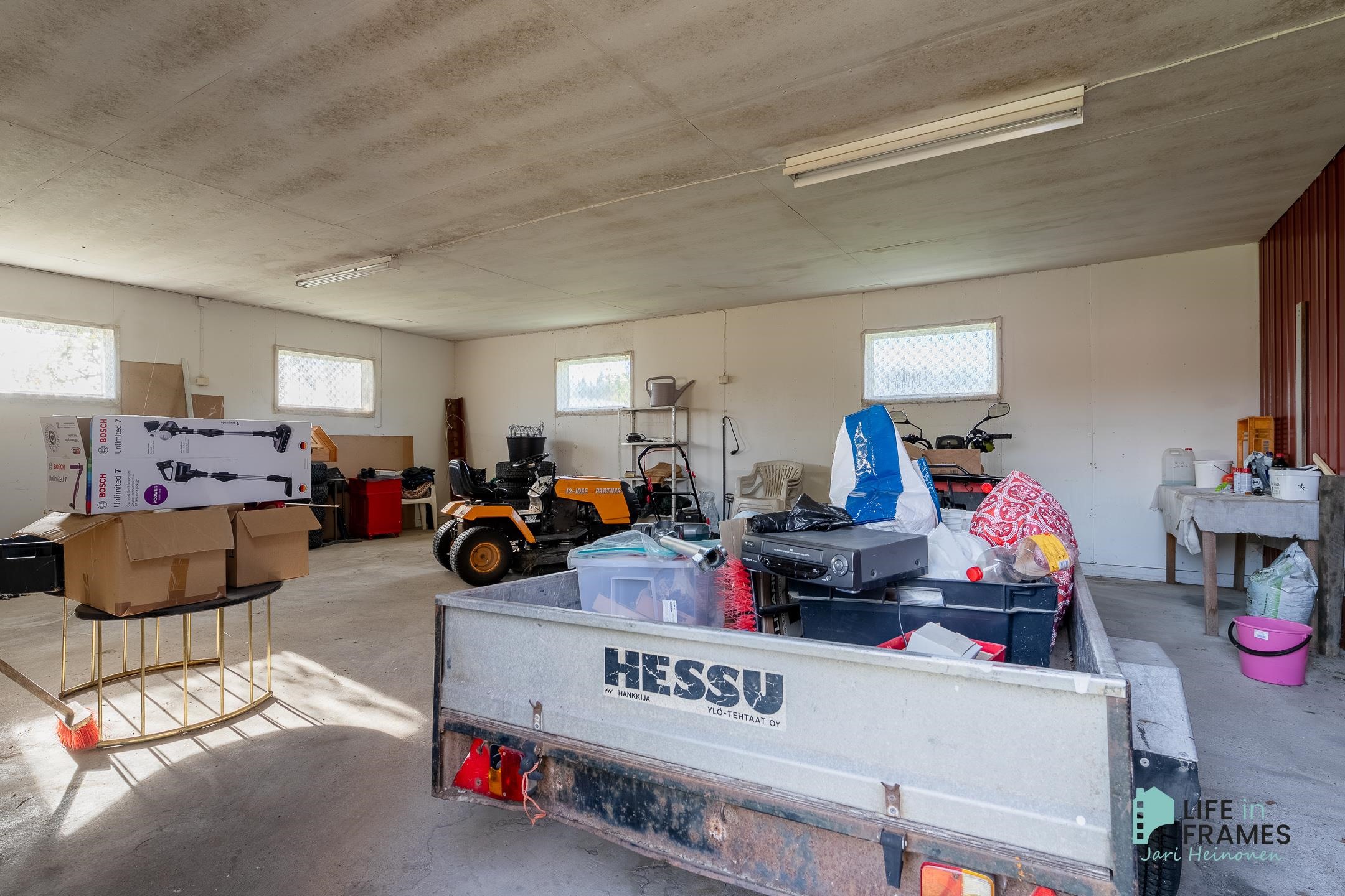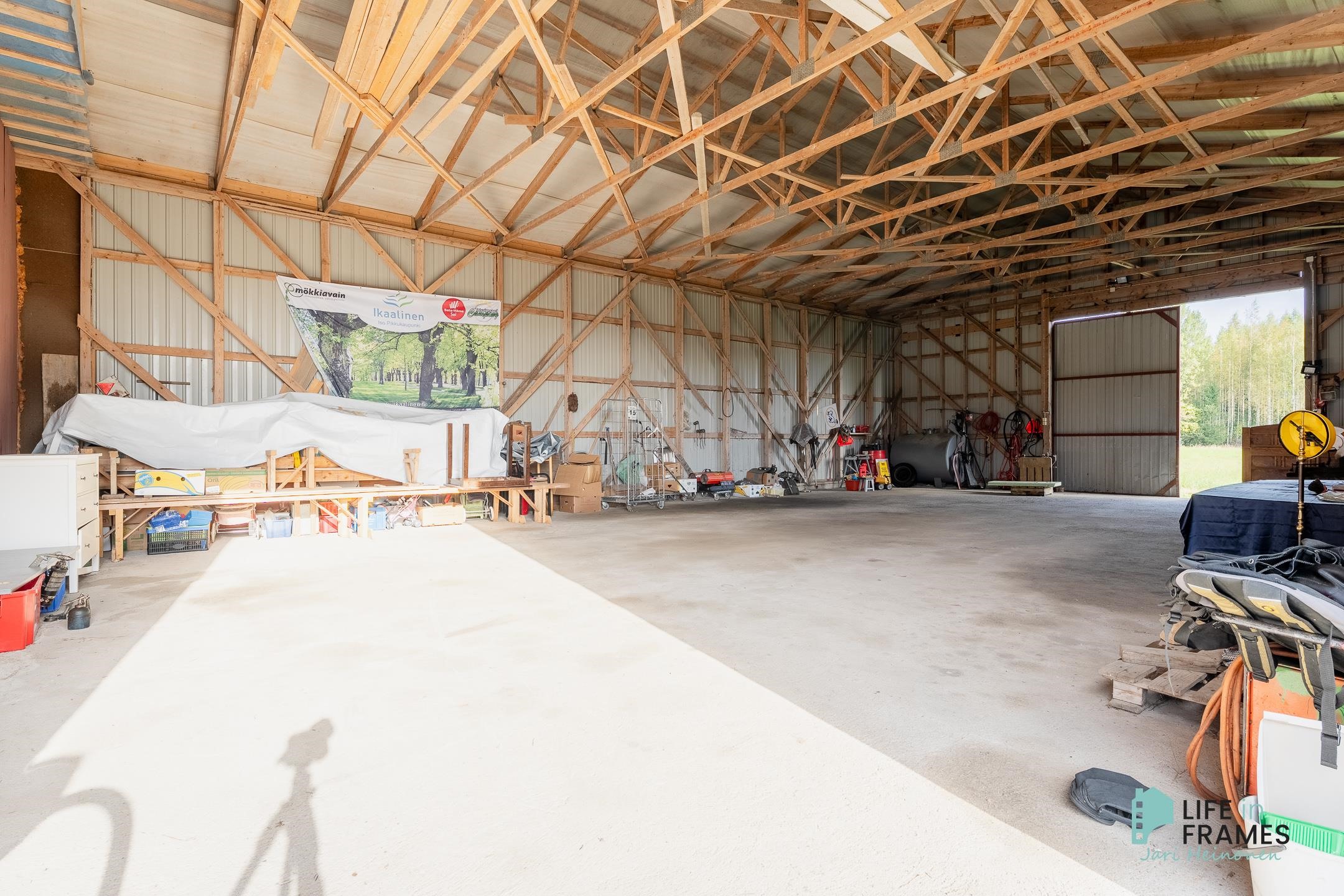 Pihapiirissä on pihasaunaa, konehallia, navettaa ja autotalli/varastoa.