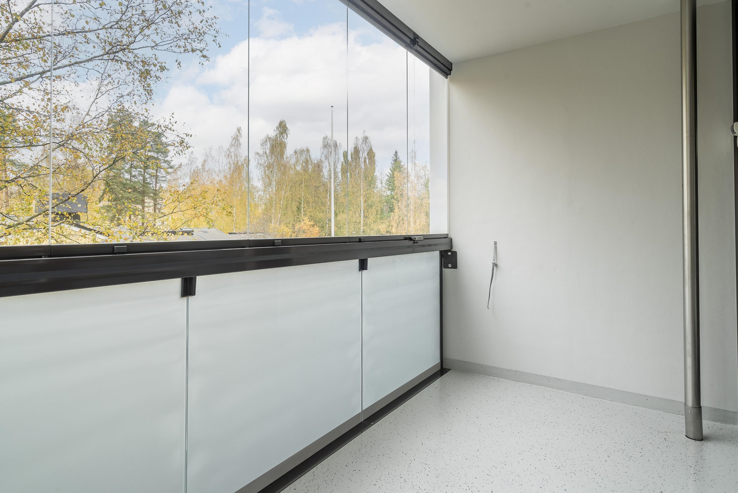 Viihtyisyyttä tuo upouudet juuri rakennetut parvekkeet ja ne on myös lasitettu. Samalla niiden vedenohjaus on järjestetty uudestaan ja on tehty valmius ilmalämpöpumppujen kondenssivedelle.