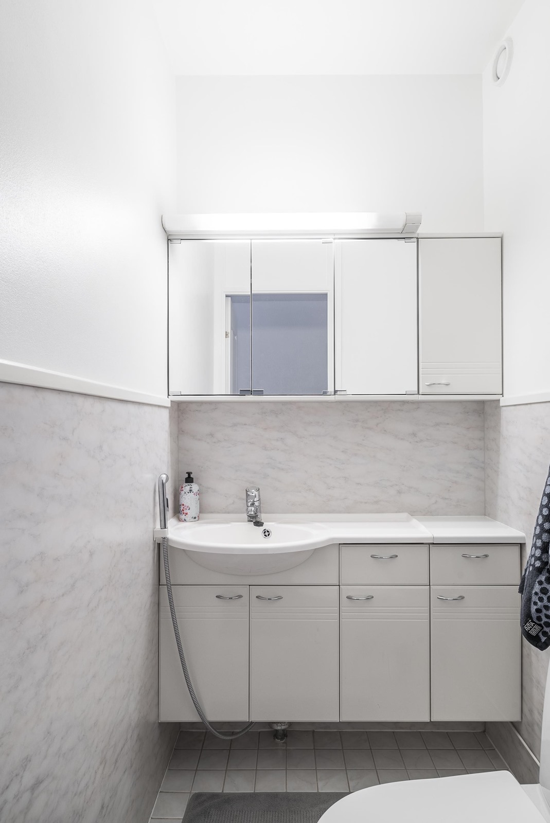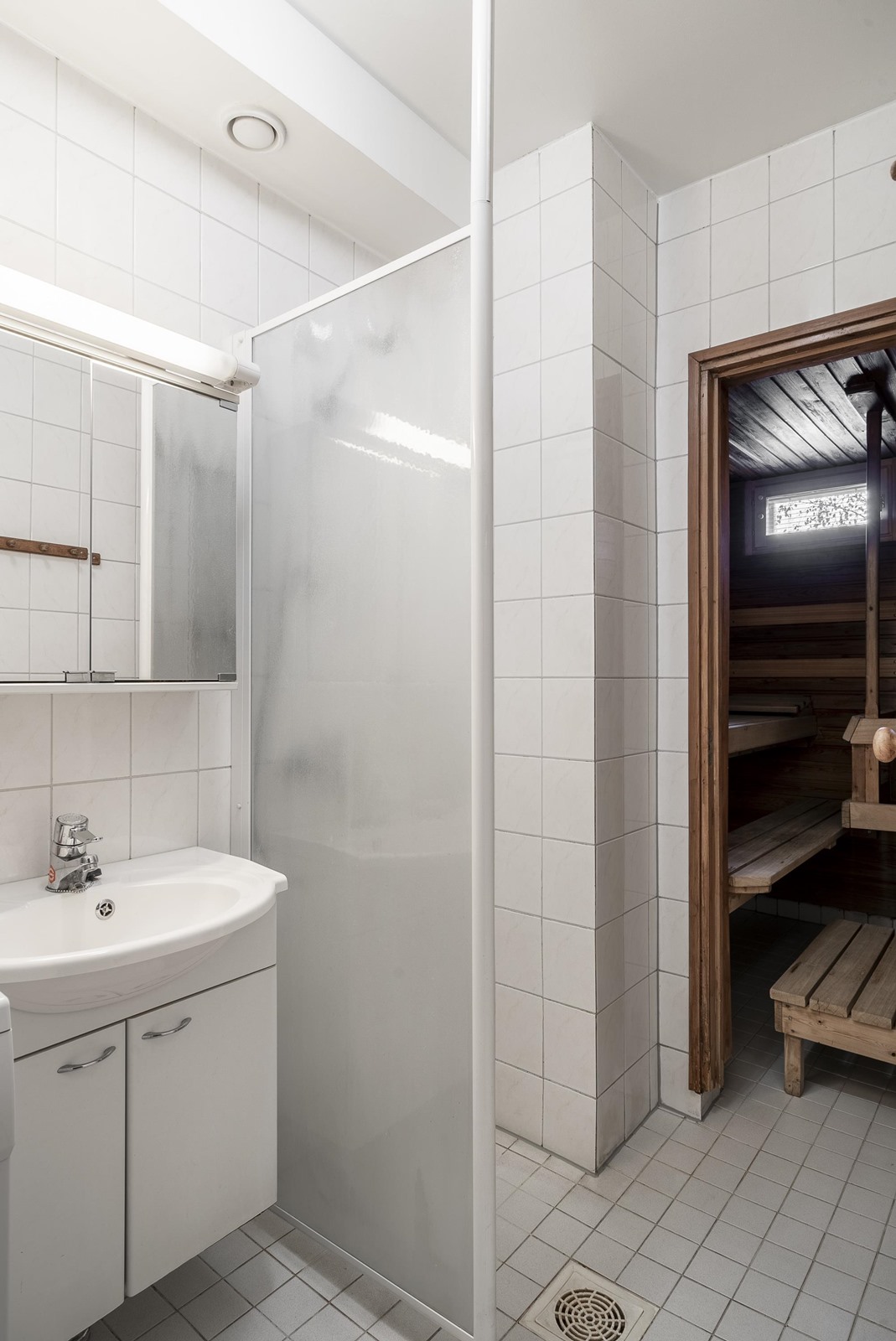 - Sauna, sähkökiuas, kylpyhuone, erillinen wc, suihku, suihkuseinä, peilikaappi kph, erillinen wc, kaapit kph, allaskaappi kph, erillinen wc, pesukoneliitäntä, kiinteät valaisimet.