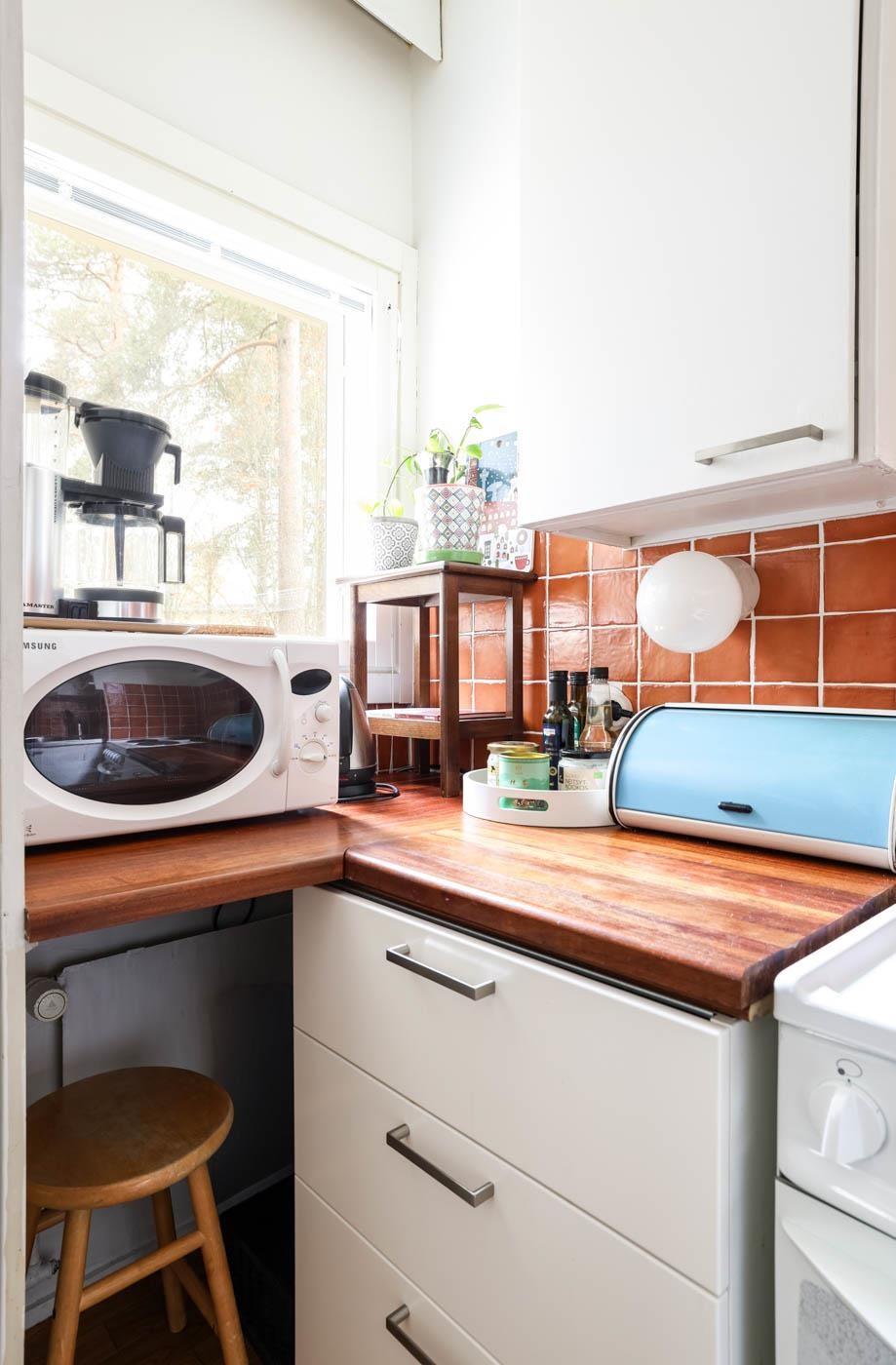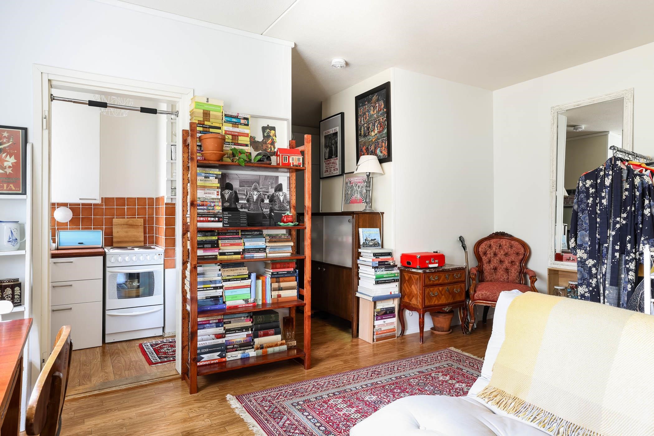 Tämä yksiö tarjoaa toimivan pohjaratkaisun. Keittotilan varustukseen kuuluu jääkaappipakastin ja sähköliesi, ja kylpyhuone on varustettu suihkulla, pesukoneliitännällä, peilikaapilla sekä allaskaapilla.