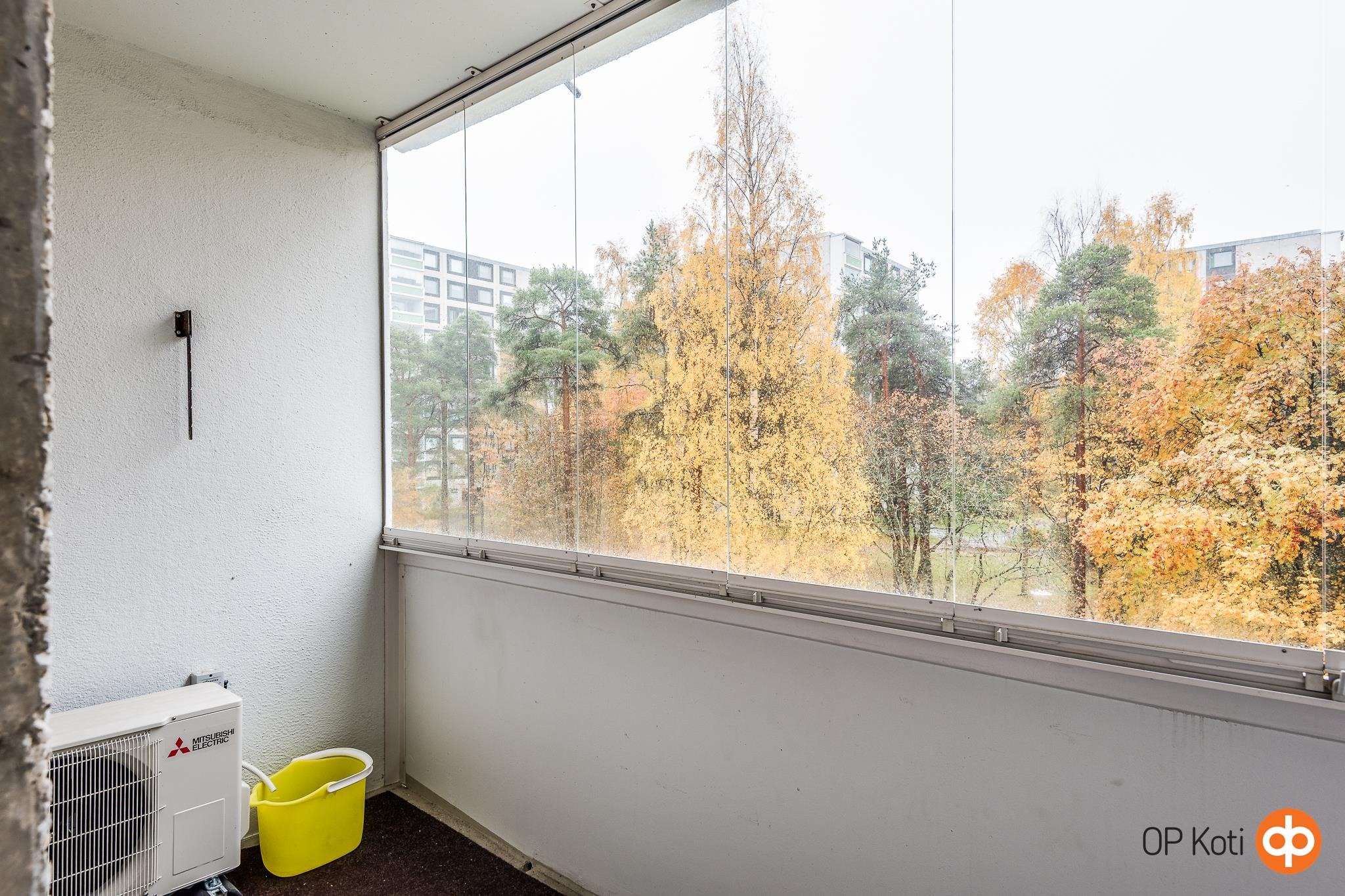 Kolmannessa kerroksessa sijaitseva hissitalon kulmahuoneisto on selkeäpohjainen ja valoisa. Keittiön kaapistot on uusittu vuonna 2014, ja samalla muitakin pintoja on päivitetty. Etelän suuntaan avautuva lasitettu parveke on mukava paikka rentoutua ja nauttia auringosta. Makuuhuoneen itään suuntautuva ikkuna tuo aamun valoa. Ilmalämpöpumppu varmistaa miellyttävän sisäilman ympäri vuoden.