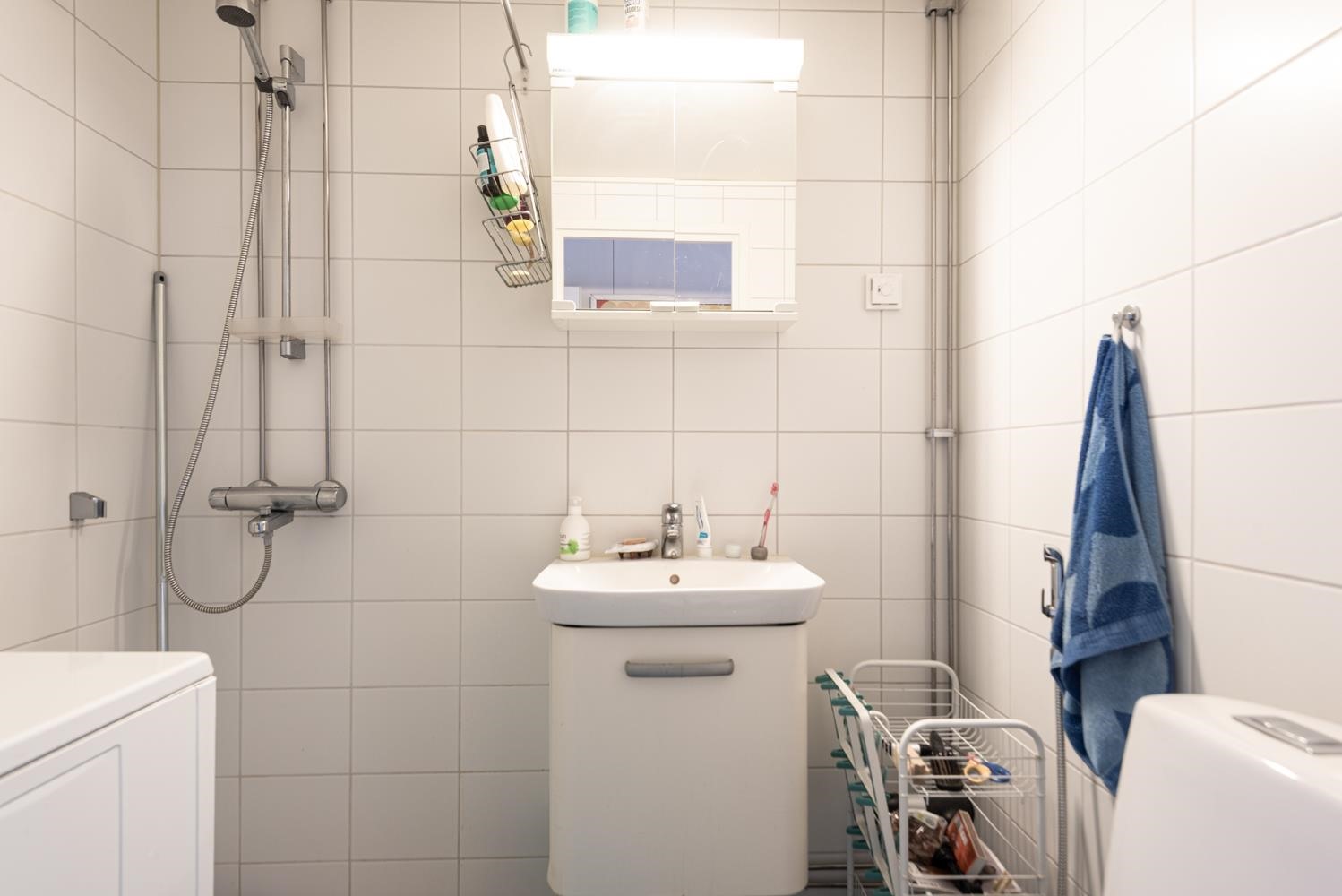 - Kylpyhuone, suihku, peilikaappi, allaskaappi, pesukoneliitäntä.
