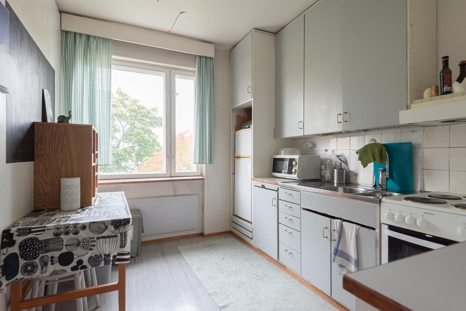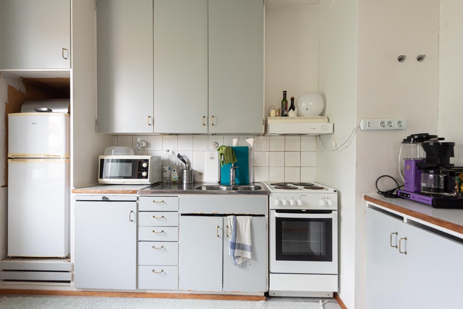 - Jääkaappipakastin, lattialiesi, liesituuletin, kaapistot.